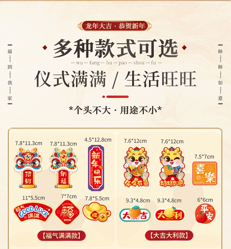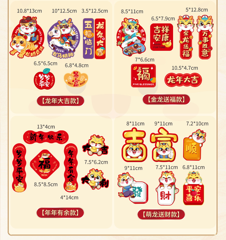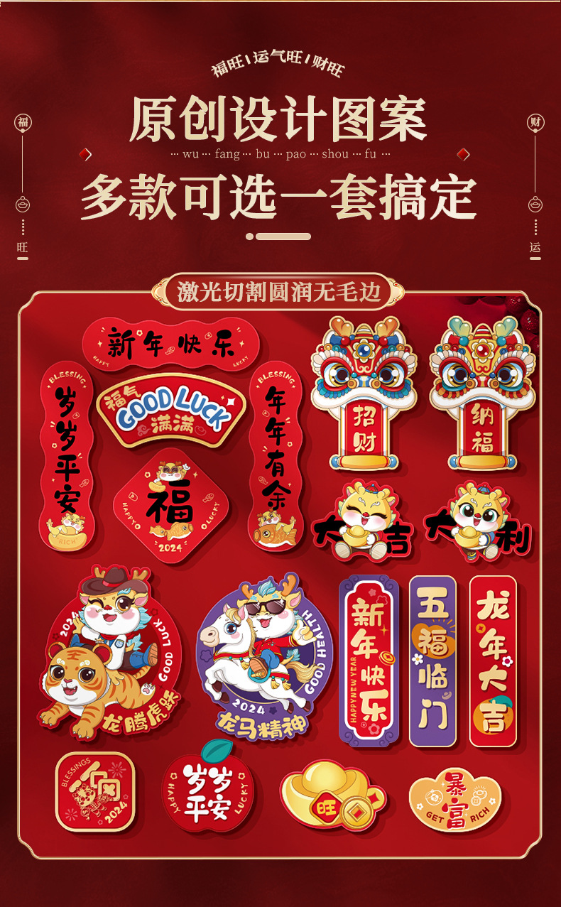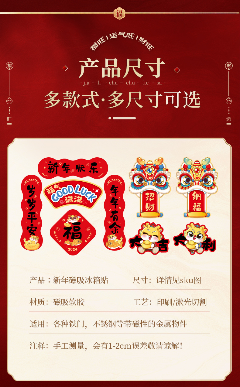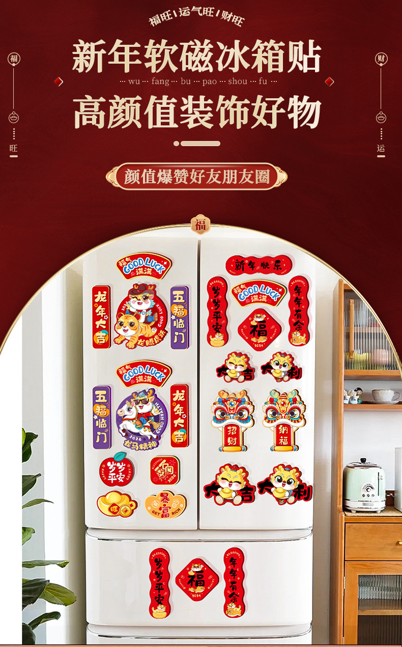 「6件套!数套可选」冰箱贴2024龙年过年软磁贴 春节卡通创意新年冰箱门磁吸装饰贴磁片家居装饰