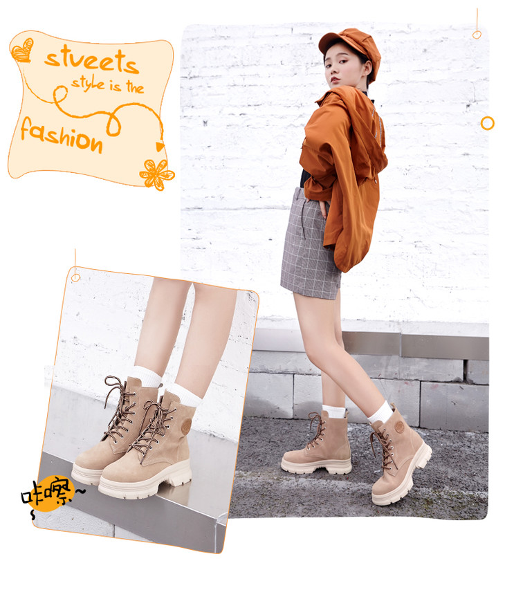 商场同款| 索菲娅秋冬松糕厚底防滑机车靴女靴SF94116030