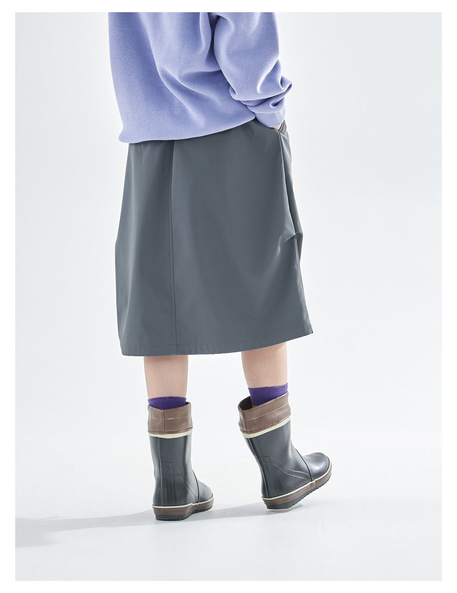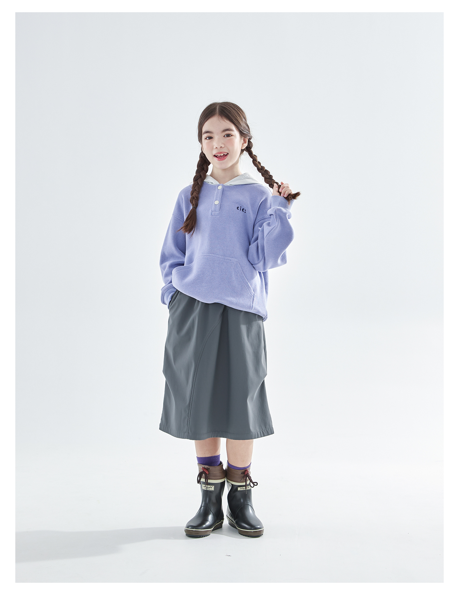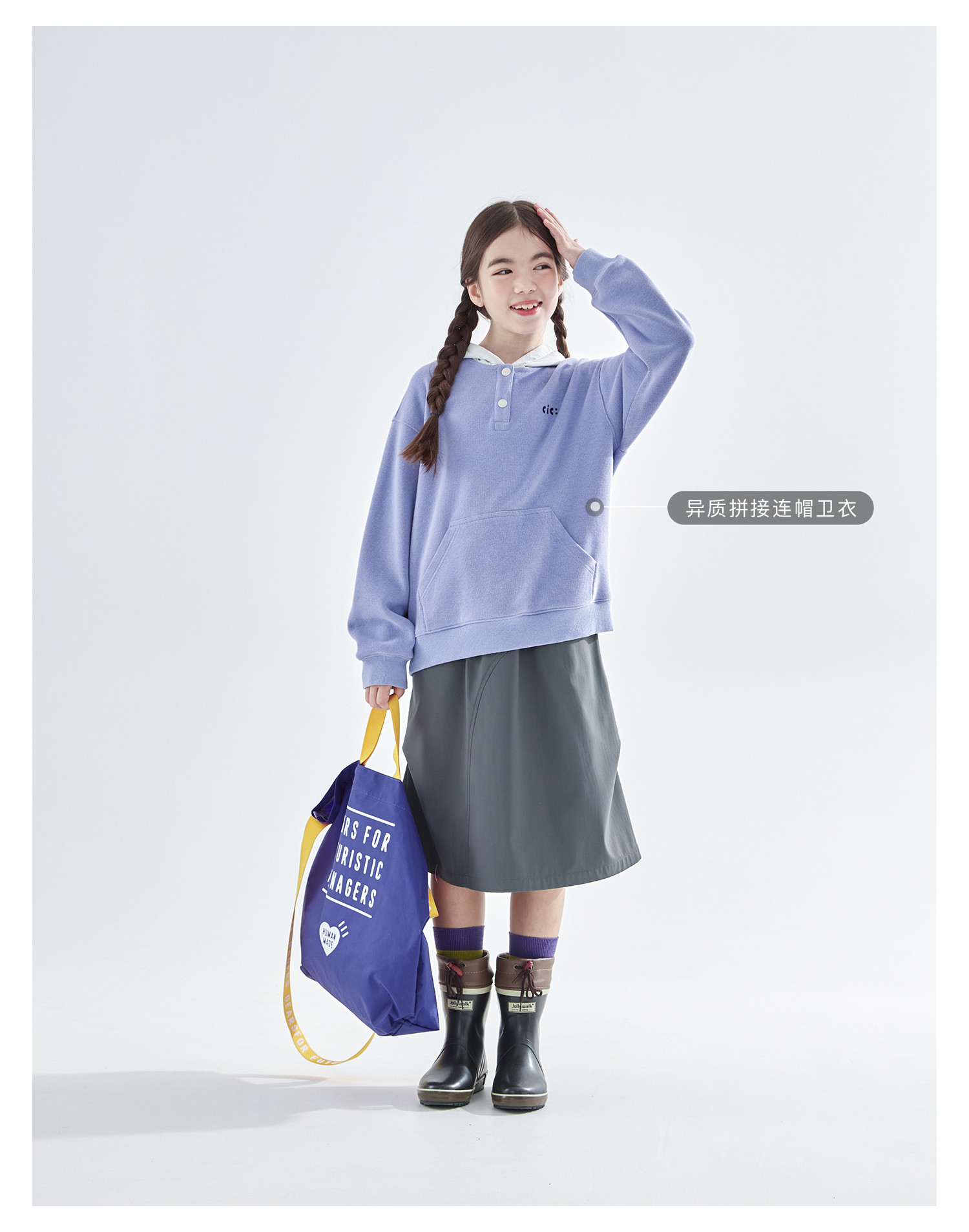 cicochild25年冬季新款亲子中大女童加绒工装半裙防泼水灰色长裙