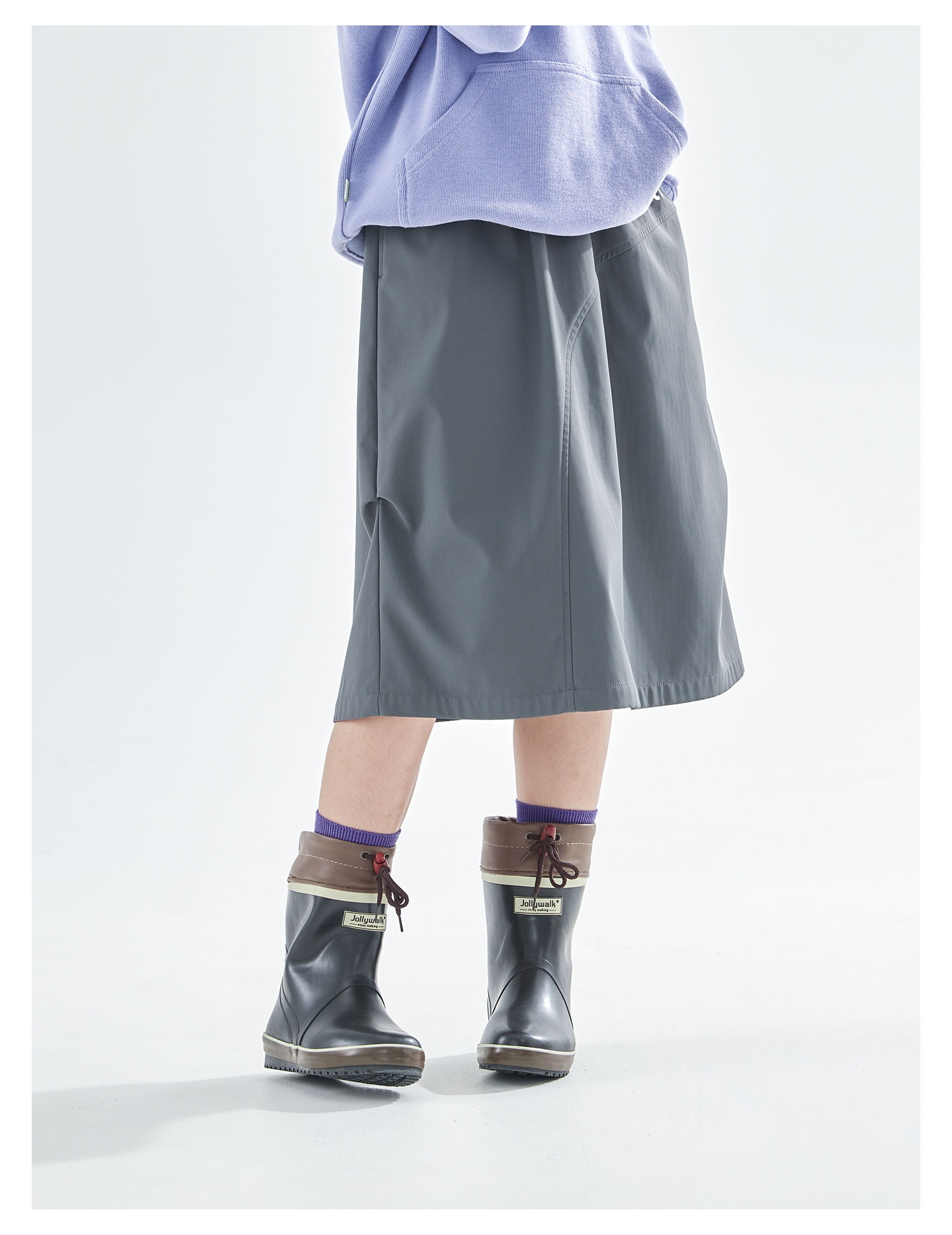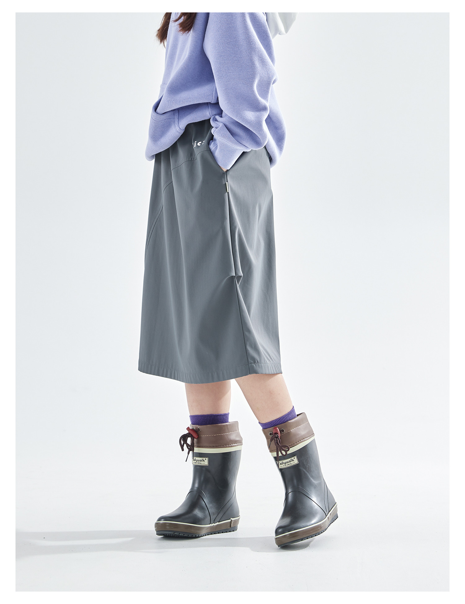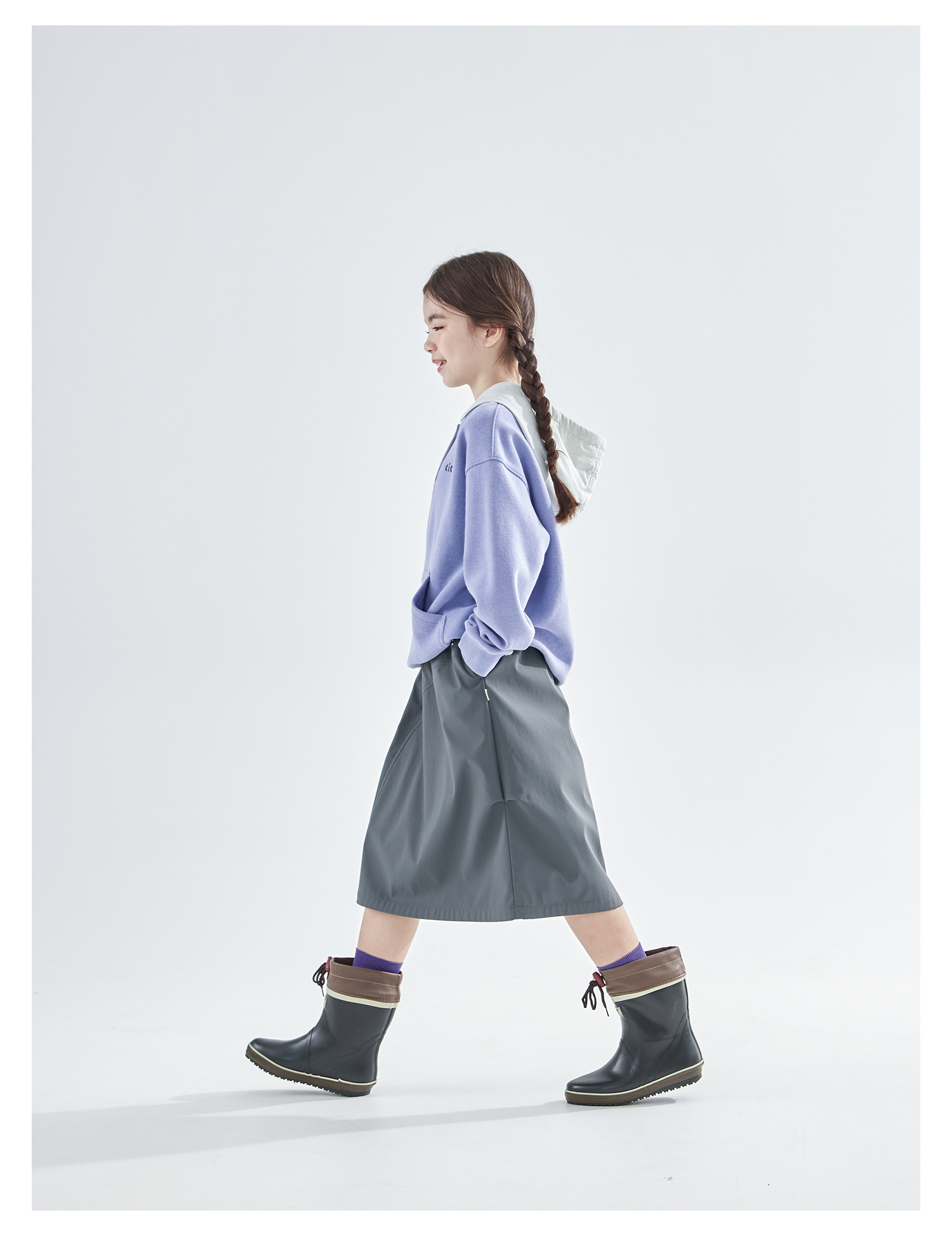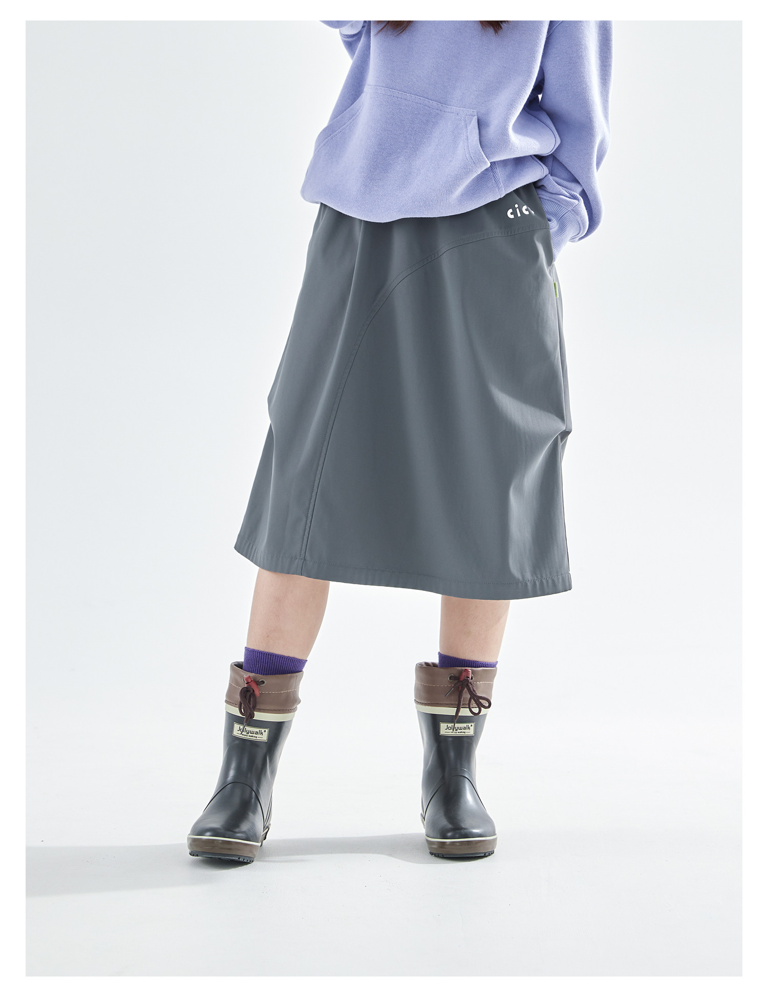 cicochild25年冬季新款亲子中大女童加绒工装半裙防泼水灰色长裙