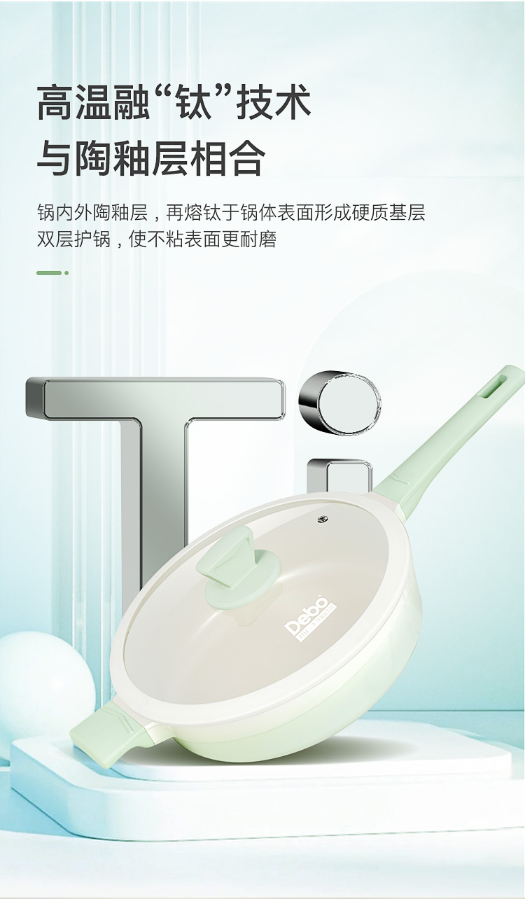 Debo德铂0氟钛盾不粘炒锅无涂层少油烟平底炒菜锅电磁炉燃气通用
