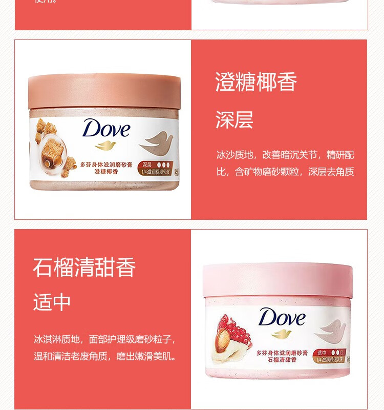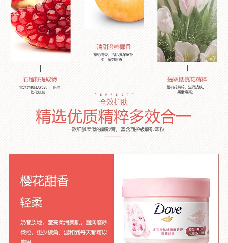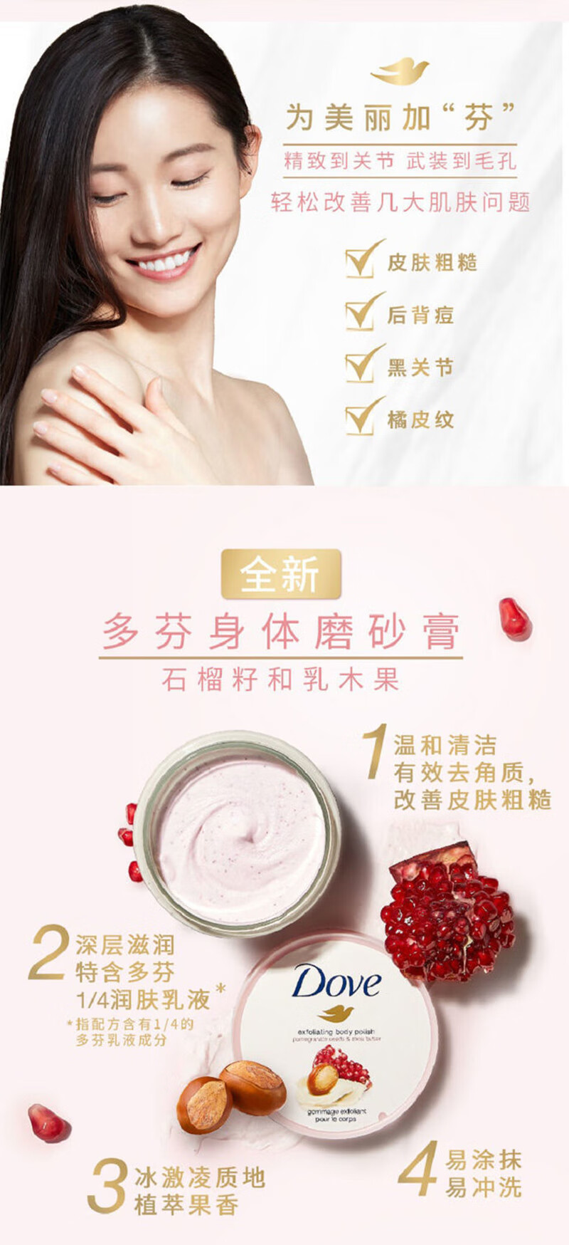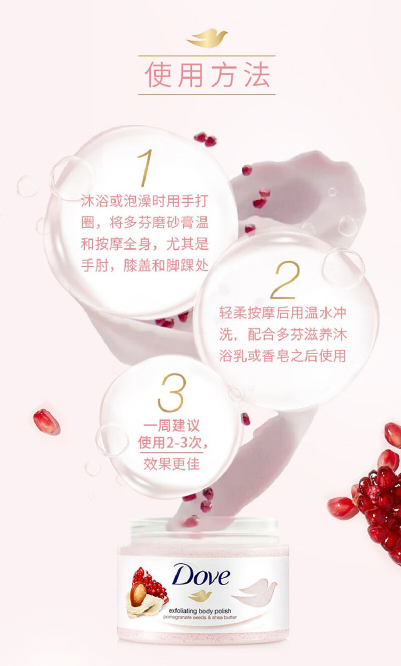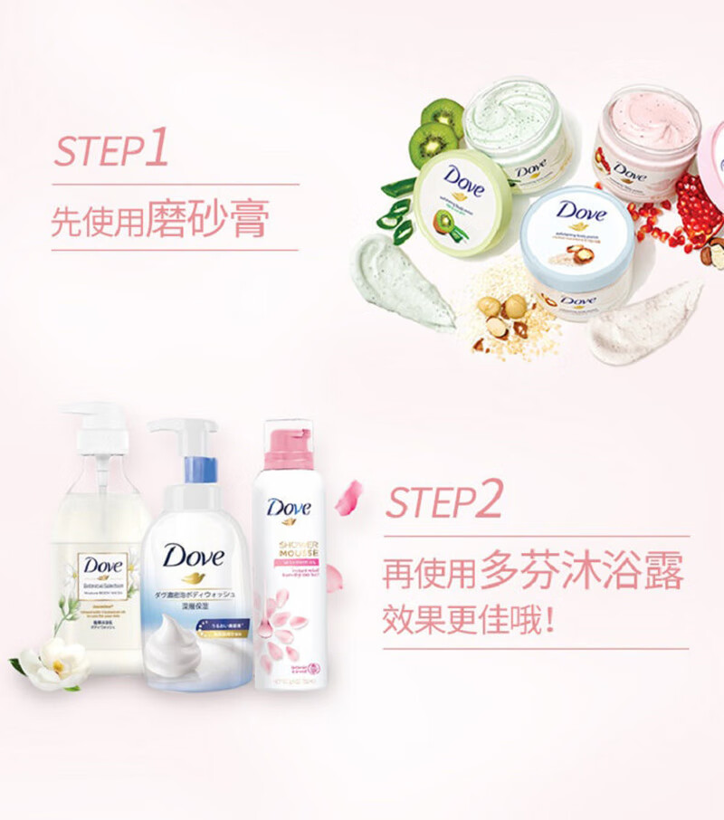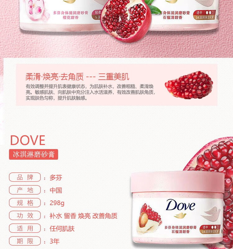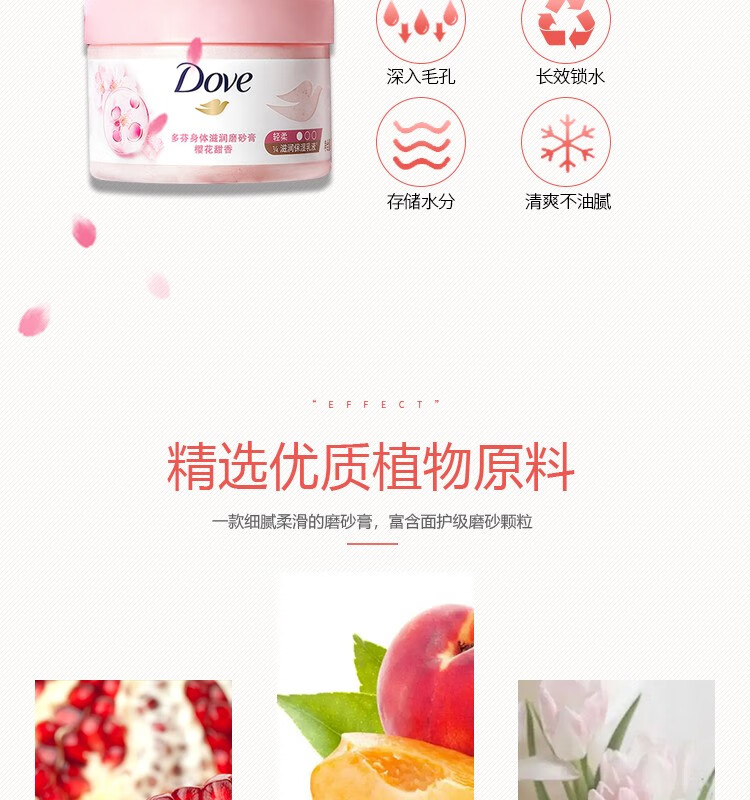 多芬(Dove)冰淇淋磨砂膏角质滋润保湿焕亮肌肤持久留香298g 樱花甜香298g