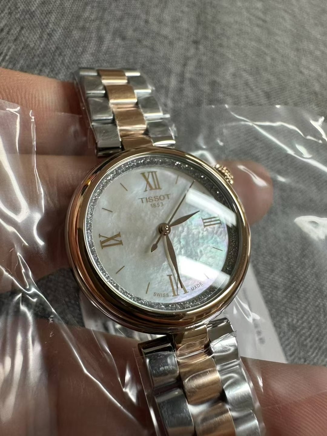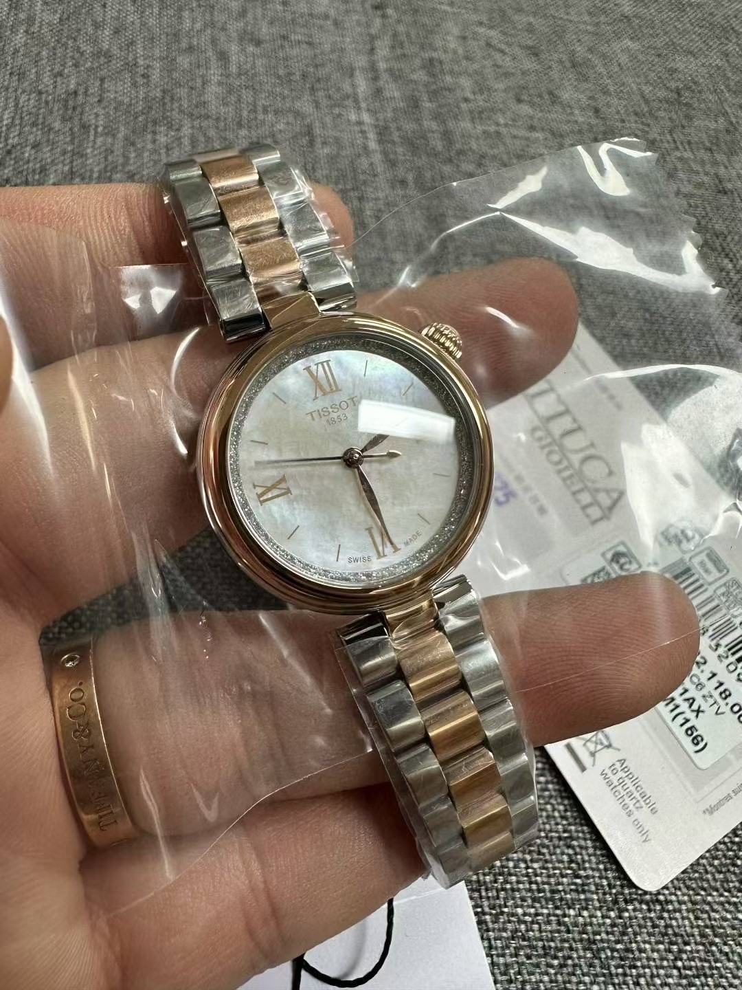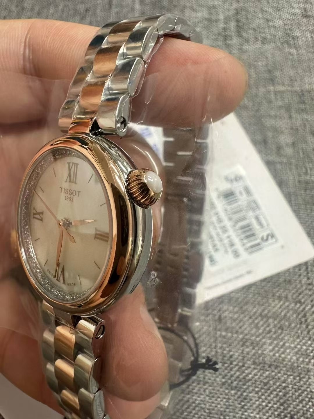 【刘亦菲同款,七夕好礼】Tissot天梭新品小美人Désir系列星光款石英女表,货号T1520102. 流光溢彩,腕间呈现,实用性与外观完美叠合,金属部分316L精钢搭配温润无比的PVD玫瑰金镀层,温柔婉约,圈周施华洛世奇饰品级水钻点缀其间,云白贝母字面,沟壑磨平后镶嵌玫瑰金钉针,象征女性风雨后的坚毅从容。 28mm蓝宝石镜面,瑞士ETA-F04.115石英机芯带来超级硬核的使用体验,历经时间磨砺,历久弥新。 整表仅7.68mm厚度,54克重,美丽无负担