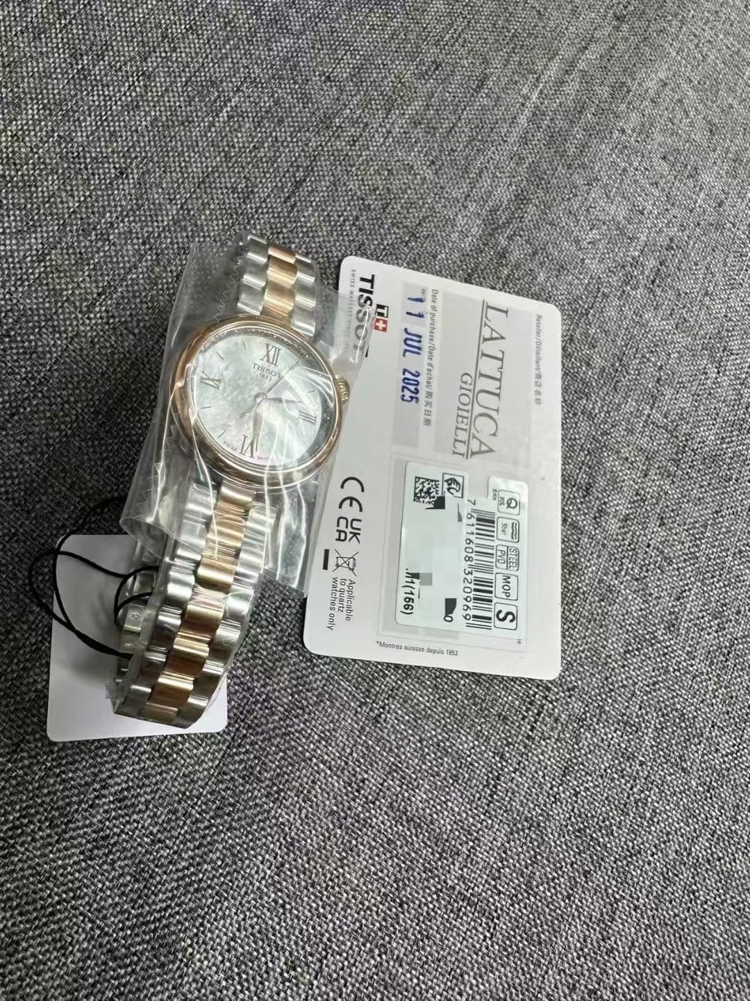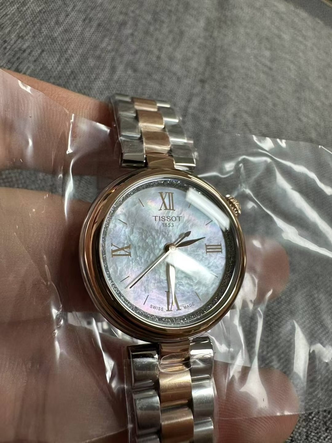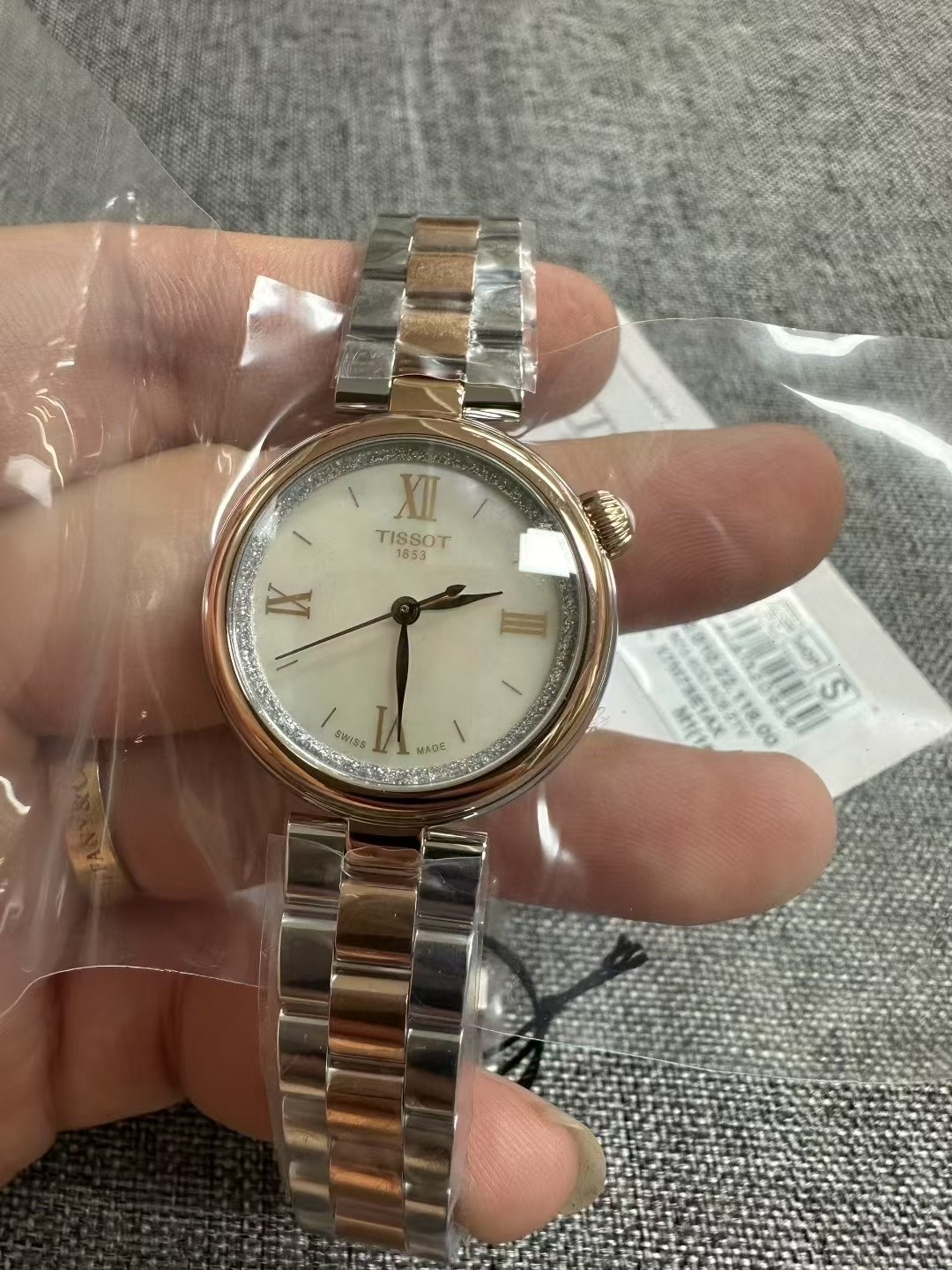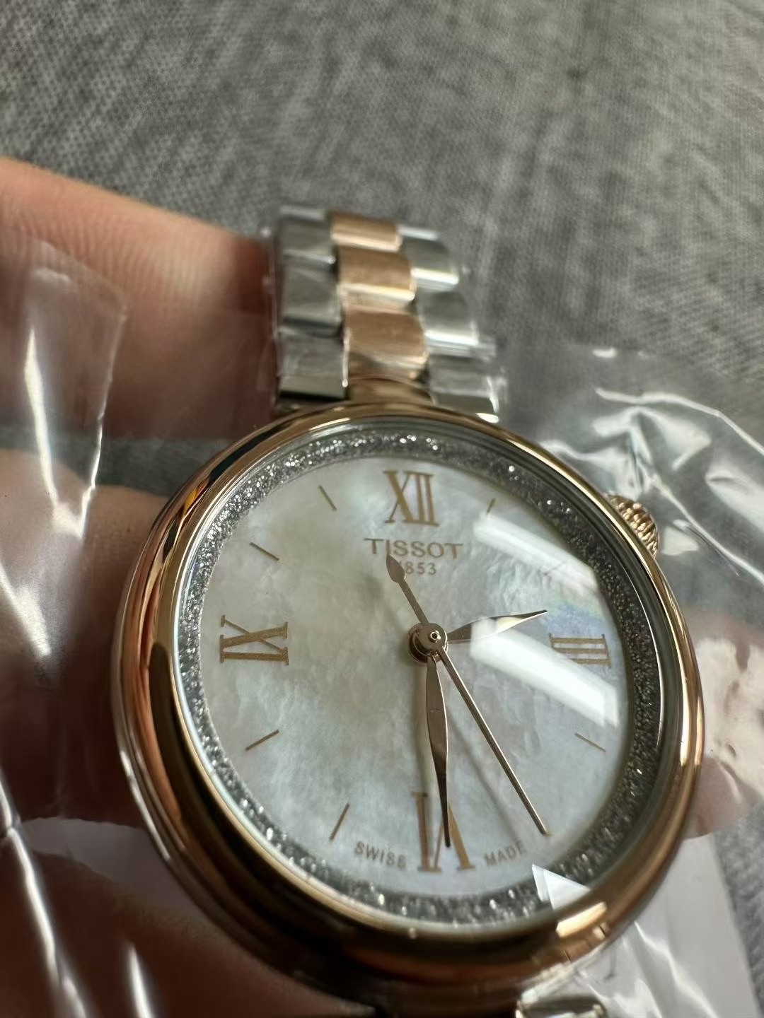 【刘亦菲同款,七夕好礼】Tissot天梭新品小美人Désir系列星光款石英女表,货号T1520102. 流光溢彩,腕间呈现,实用性与外观完美叠合,金属部分316L精钢搭配温润无比的PVD玫瑰金镀层,温柔婉约,圈周施华洛世奇饰品级水钻点缀其间,云白贝母字面,沟壑磨平后镶嵌玫瑰金钉针,象征女性风雨后的坚毅从容。 28mm蓝宝石镜面,瑞士ETA-F04.115石英机芯带来超级硬核的使用体验,历经时间磨砺,历久弥新。 整表仅7.68mm厚度,54克重,美丽无负担