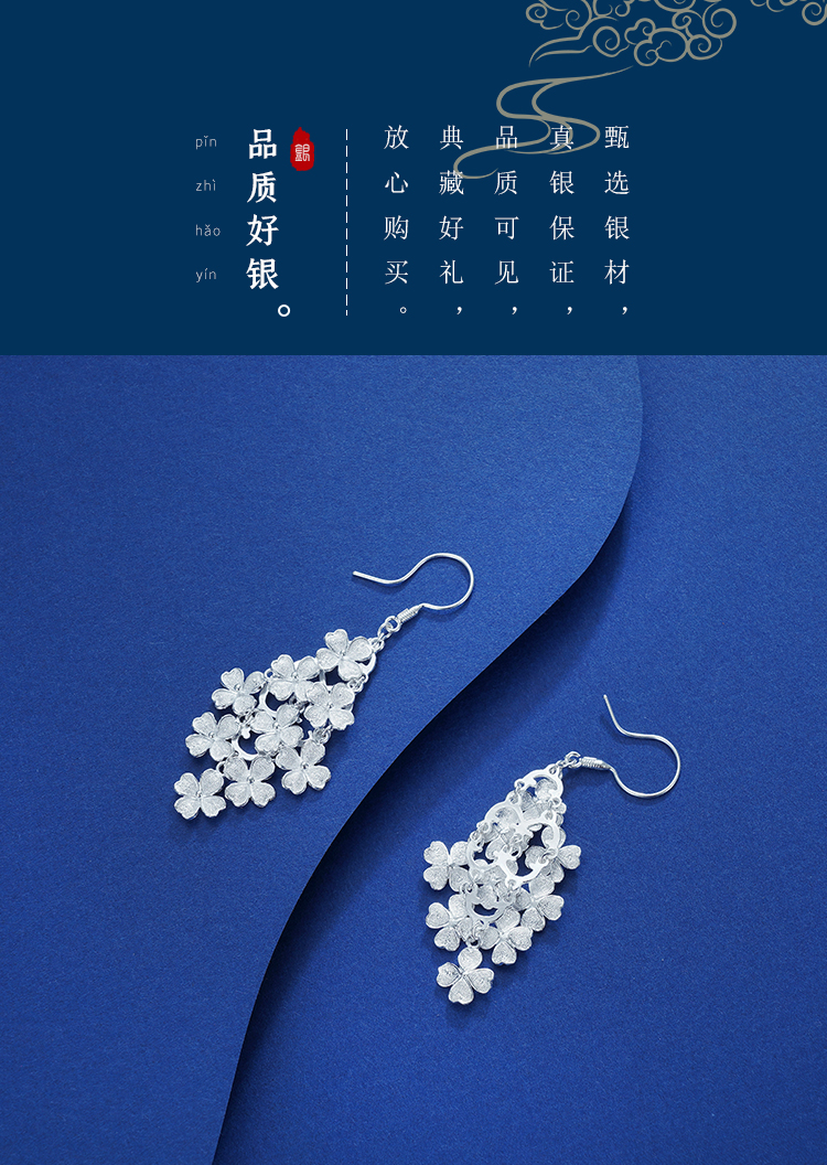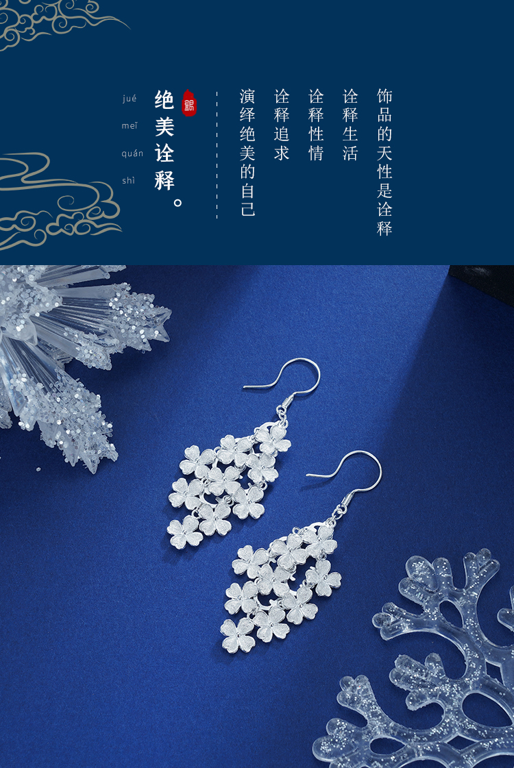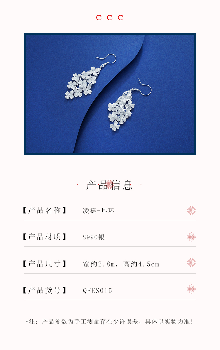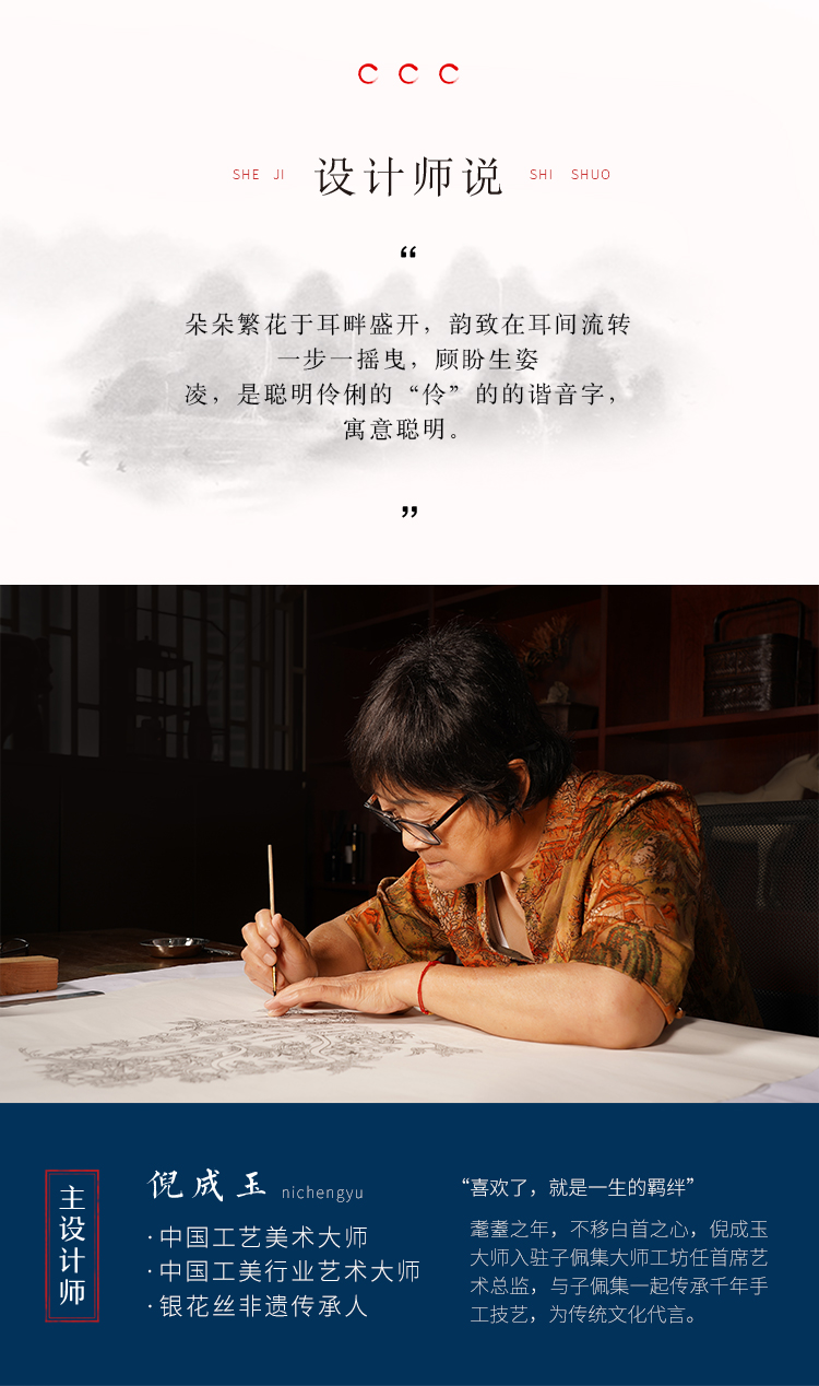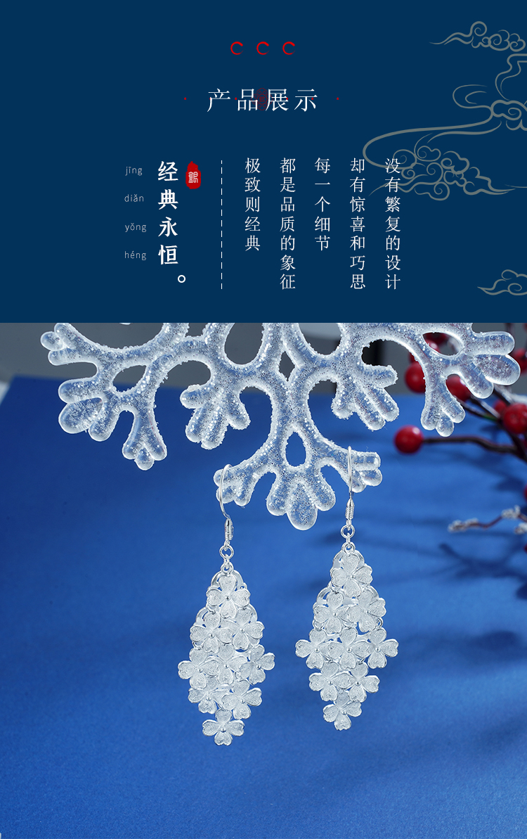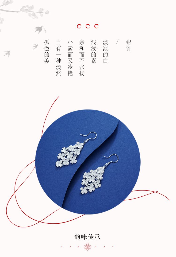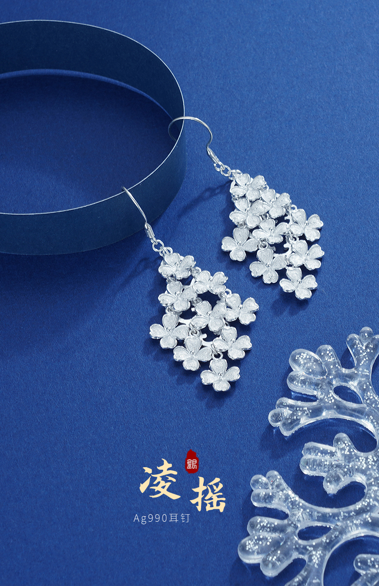【寓意】:耳环设计灵感源自繁花簇锦。朵朵繁花于耳畔盛开,风华在耳间流转。一步一摇曳,顾盼生灵姿。