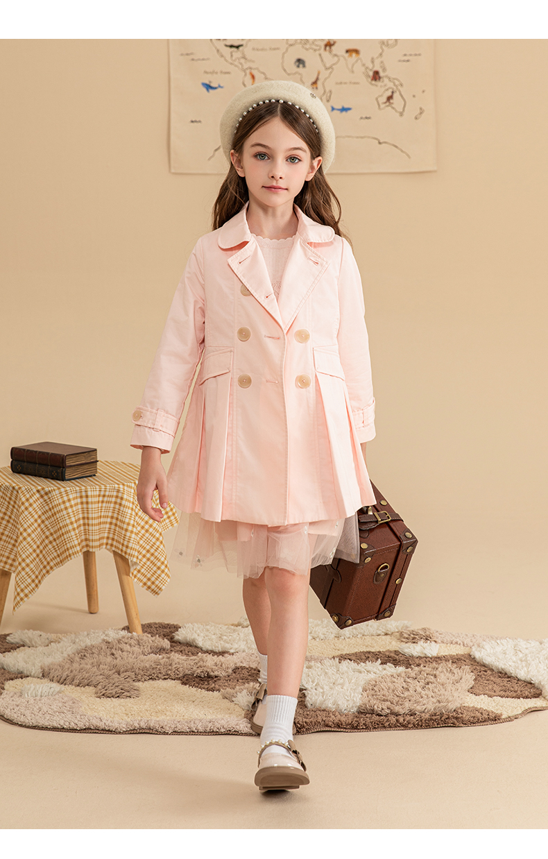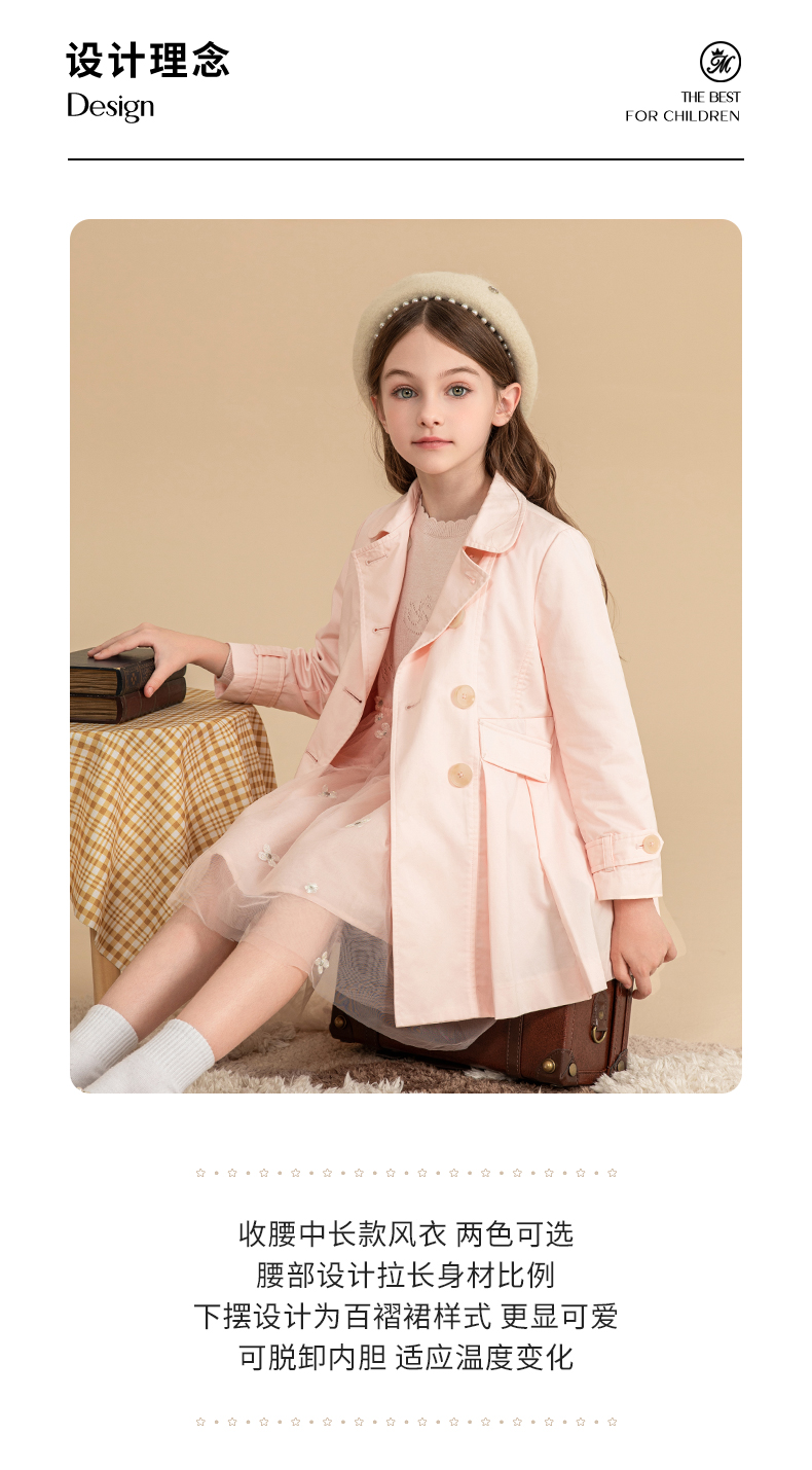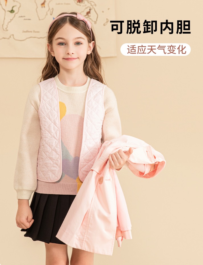 女童风衣秋冬新款英伦风童装儿童中长款可拆卸内胆纯色洋气外套