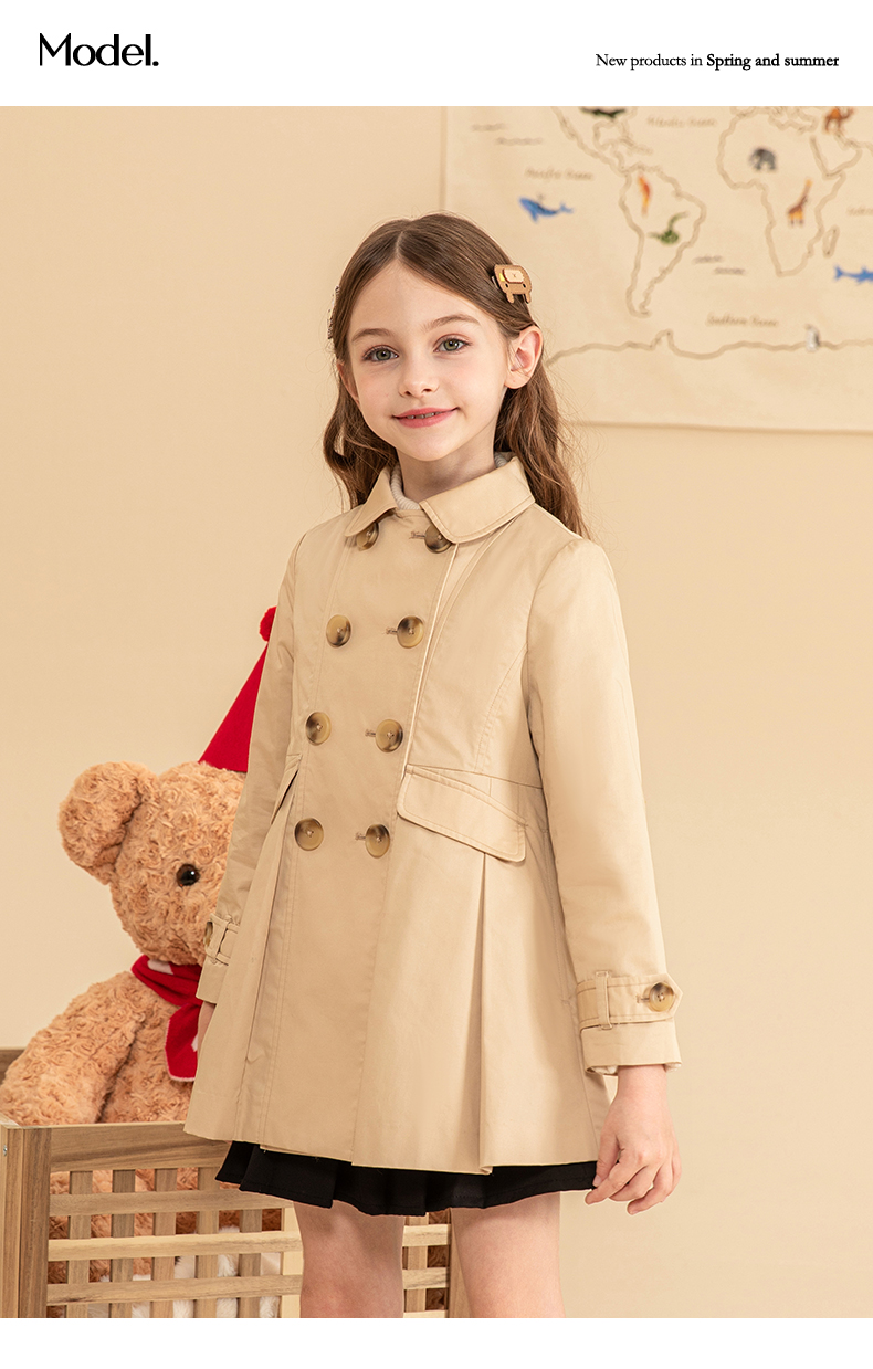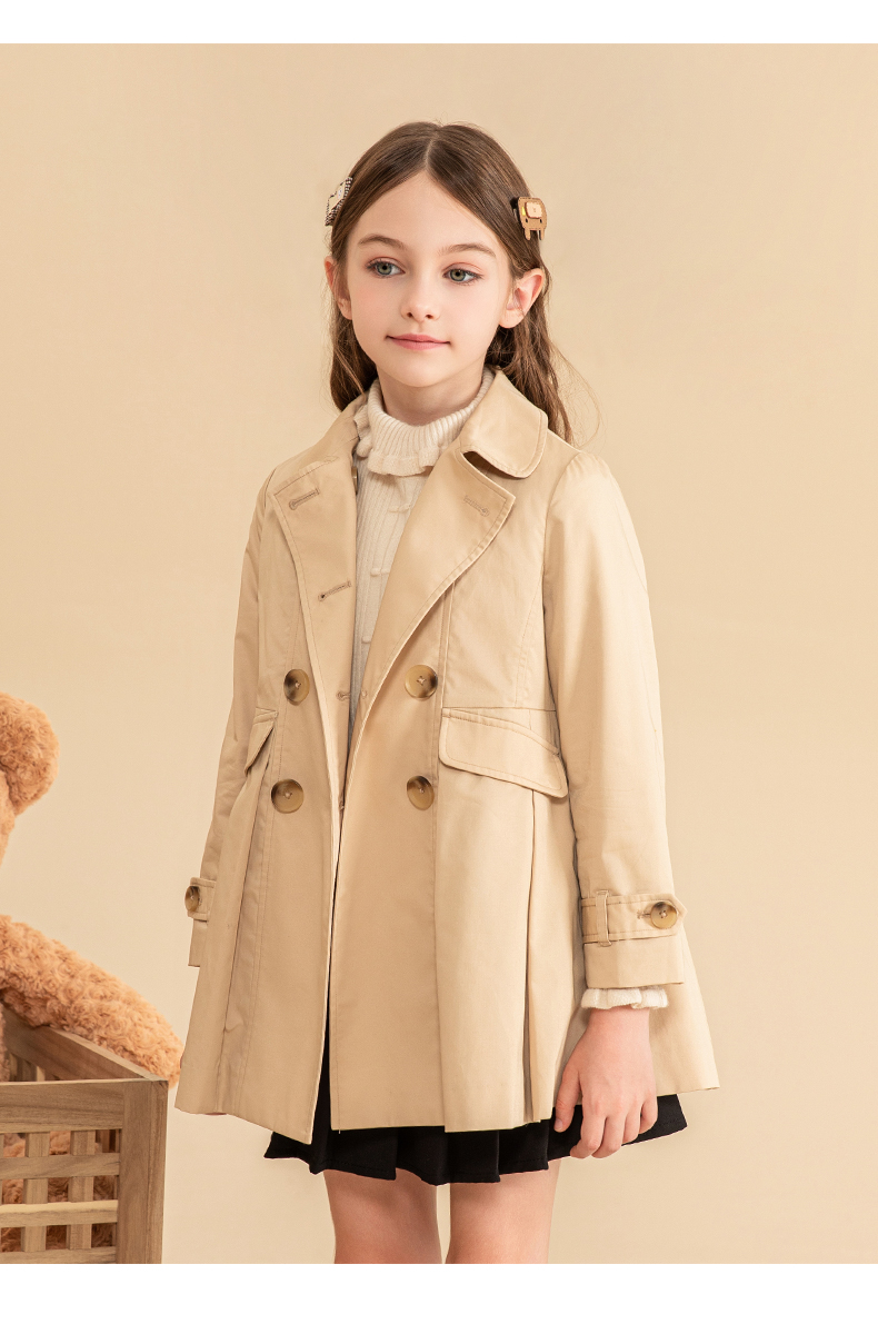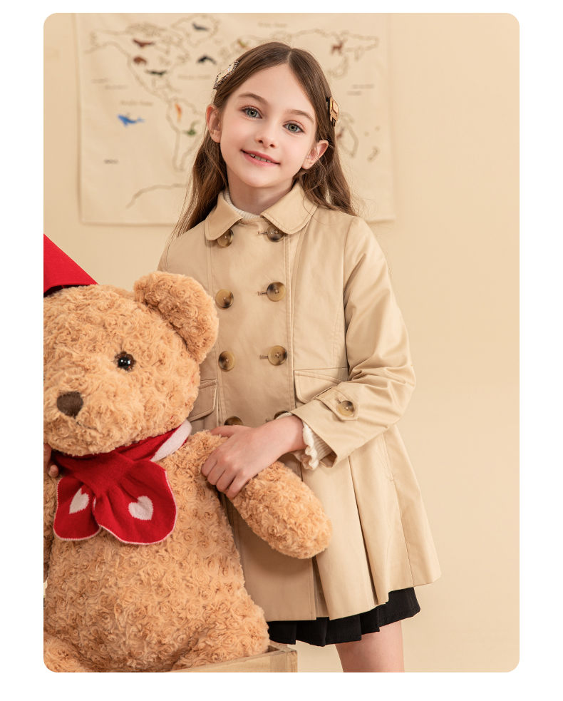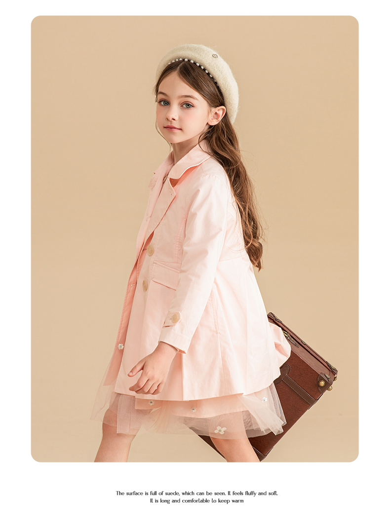 女童风衣秋冬新款英伦风童装儿童中长款可拆卸内胆纯色洋气外套