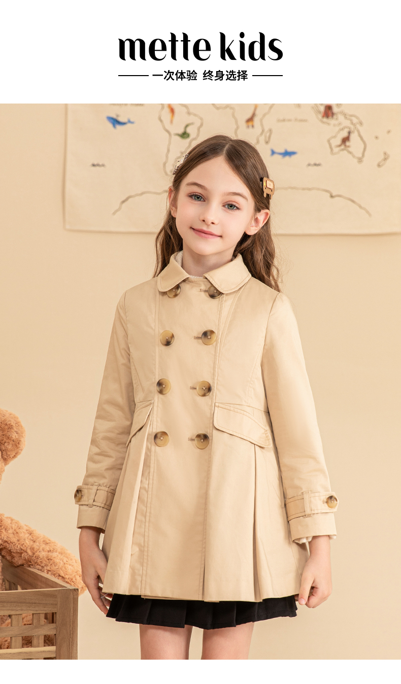 METTE童装中长款90白鹅绒羽绒服2020秋冬新品连帽大毛领加厚外套