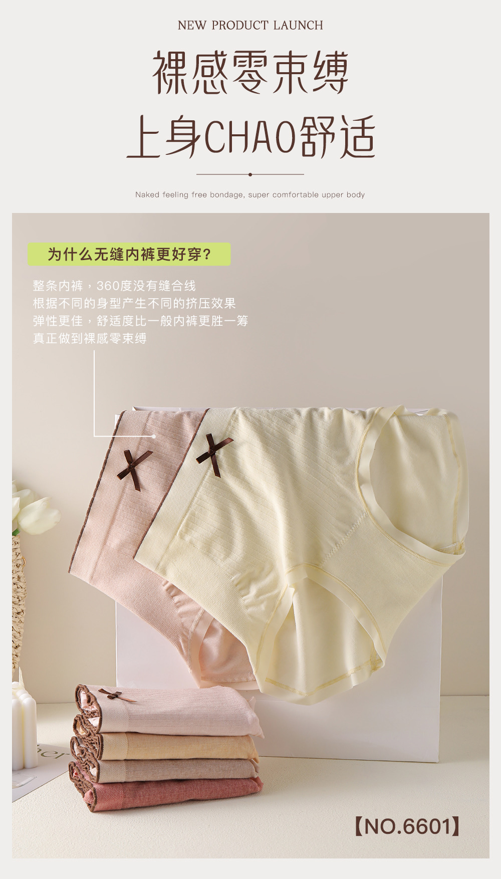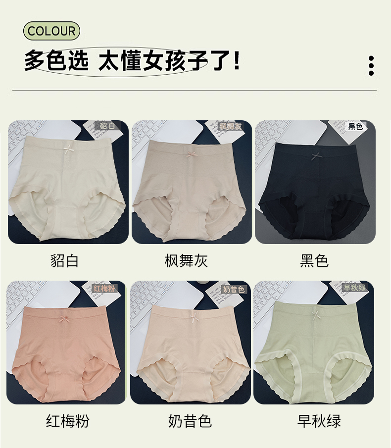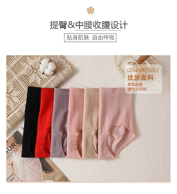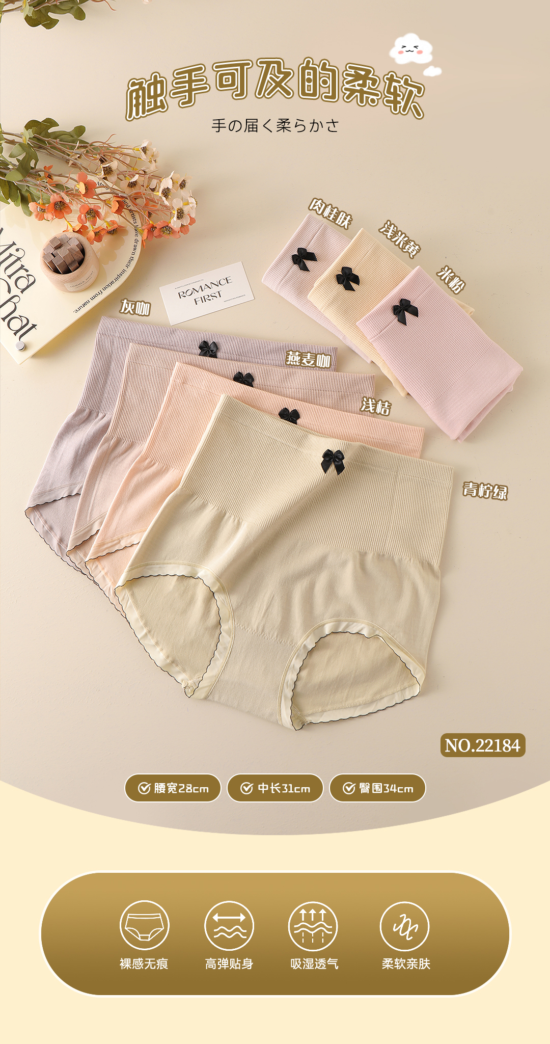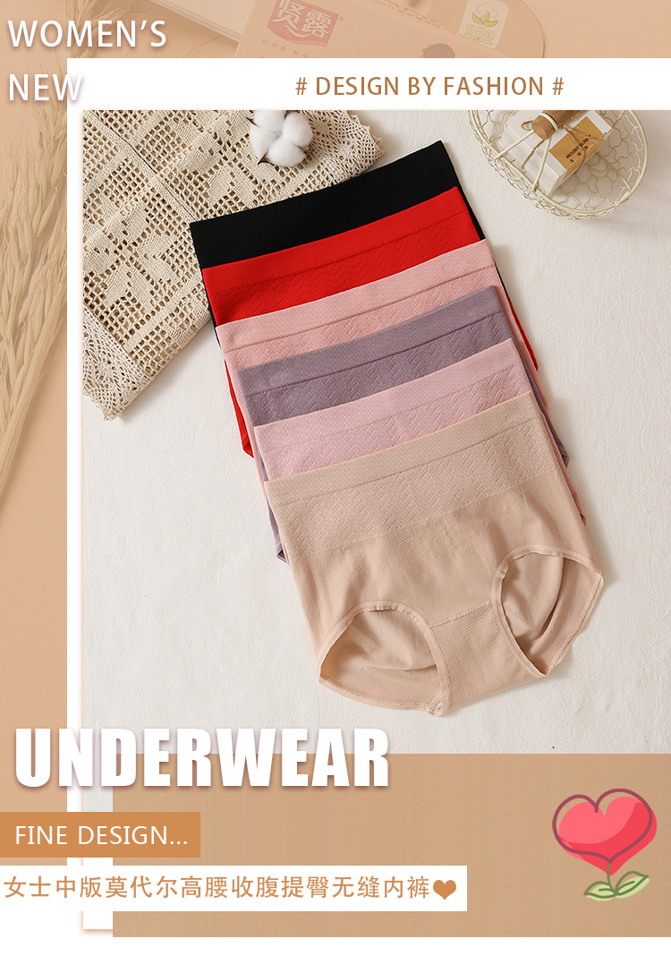 女士莫代尔高腰收腹提臀加棉裆无缝内裤22184/2037/6601/6101/1136/6402