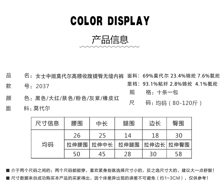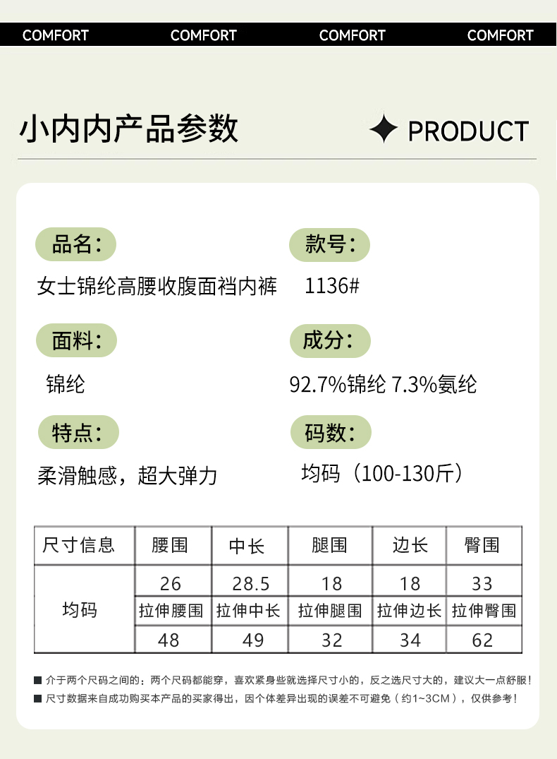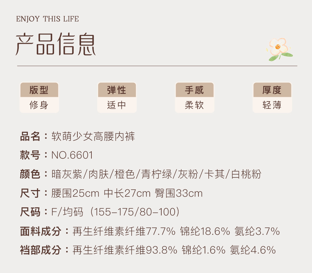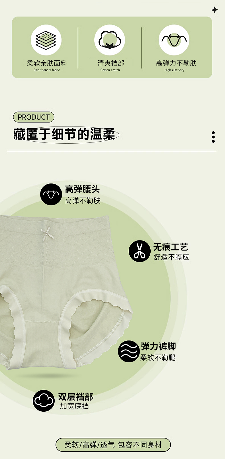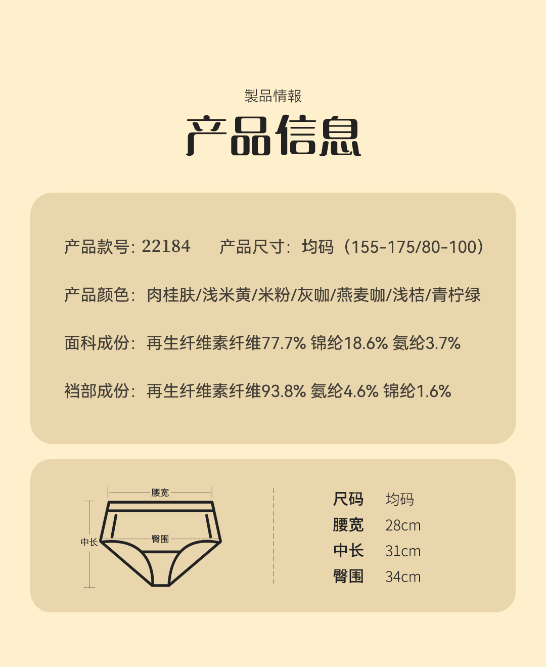 女士莫代尔高腰收腹提臀加棉裆无缝内裤22184/2037/6601/6101/1136/6402