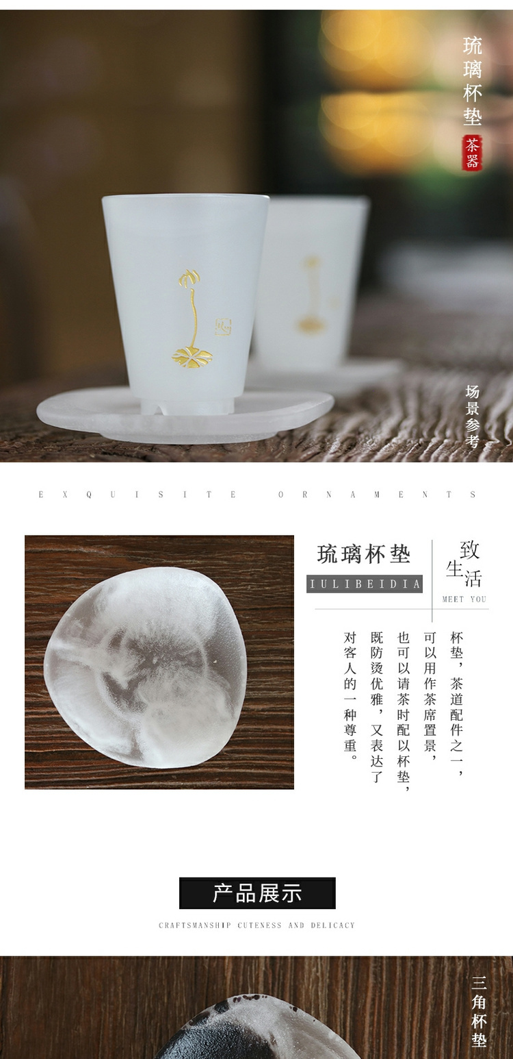 心缘堂琉璃杯托【沁芳园杯垫】功夫杯垫茶杯垫 隔热防滑杯垫 窗明杯垫