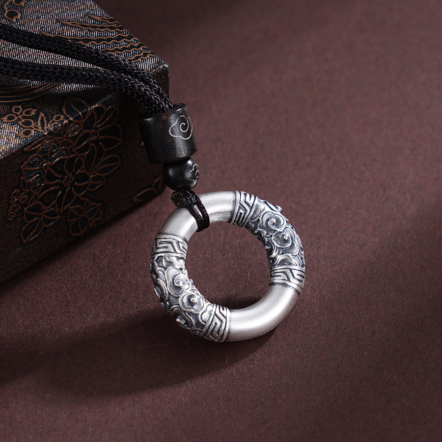 【寓意】:作品以平安扣为灵感设计,表面浮雕祥云花纹,取“祥云四起,瑞气环绕”之意,寄予佩戴之人无限好运 。
