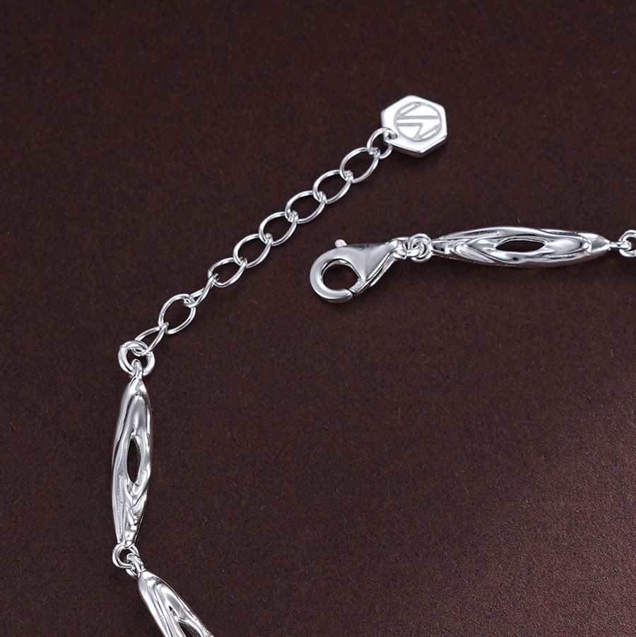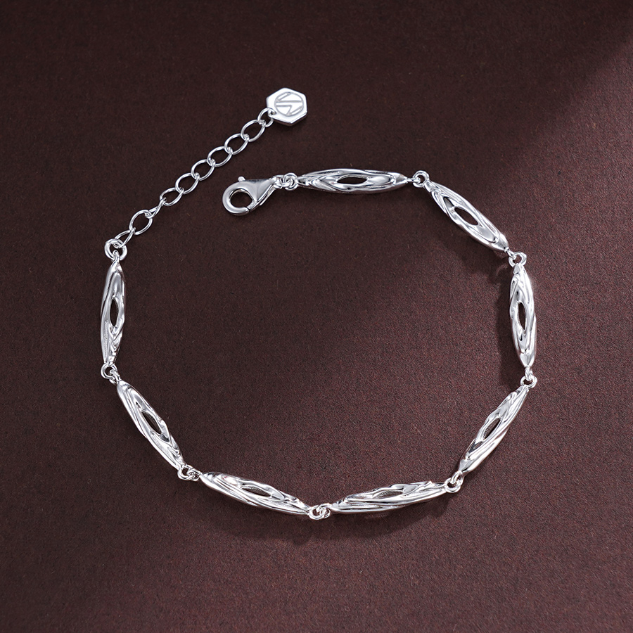 【寓意】:手链镂空设计,环环相扣,连绵相绕,寓意着福气连绵不绝。通体抛光处理,明丽细腻,银光闪耀。