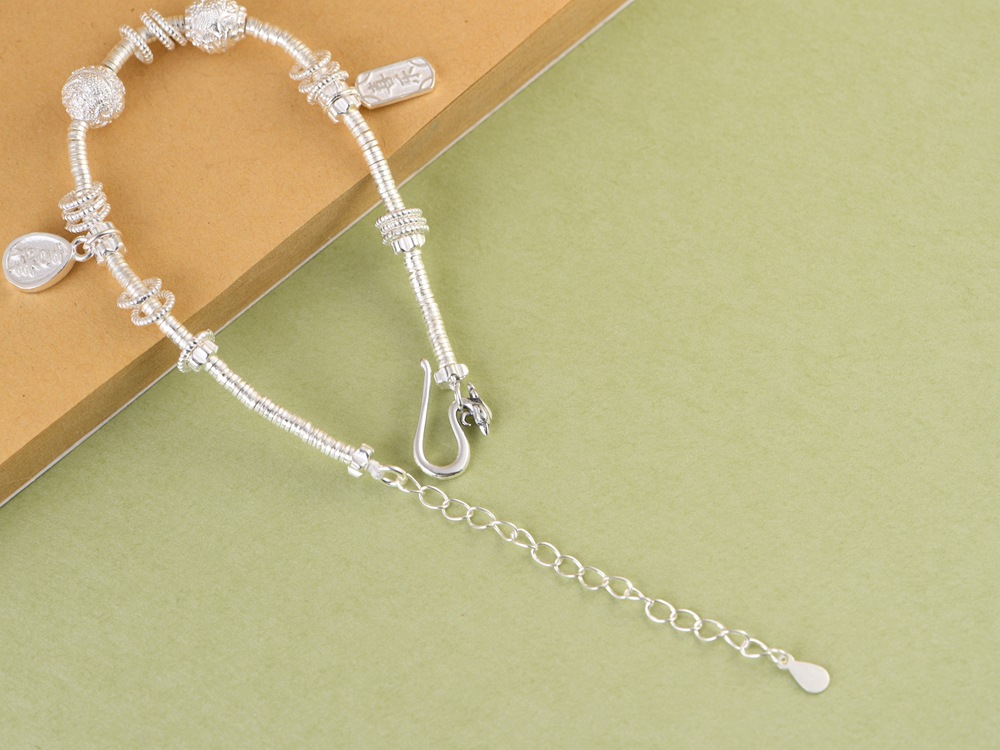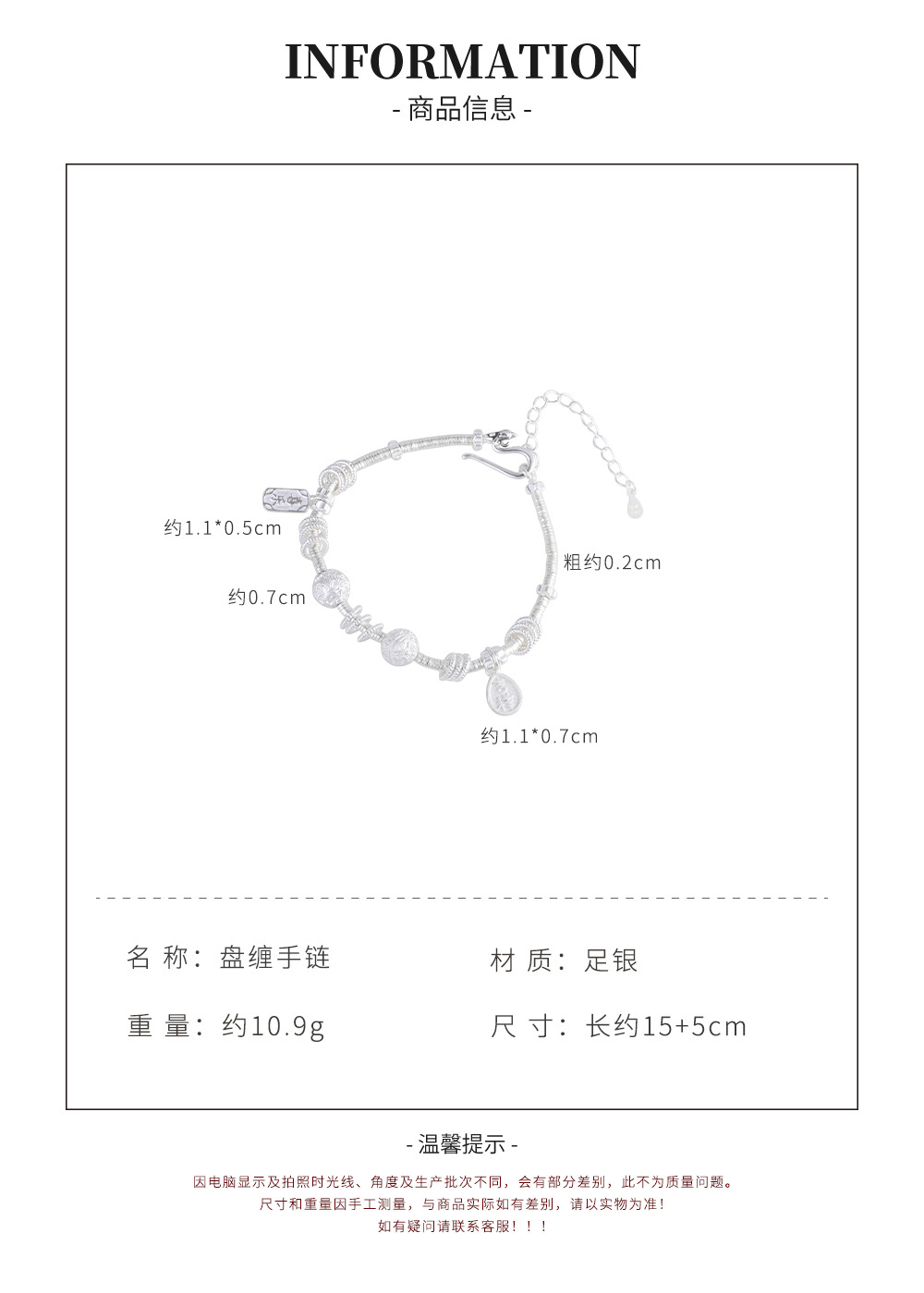 【吉言如意】足银水滴吉言吉祥平安龙凤如意盘缠手链【SCH-CK40240-4】