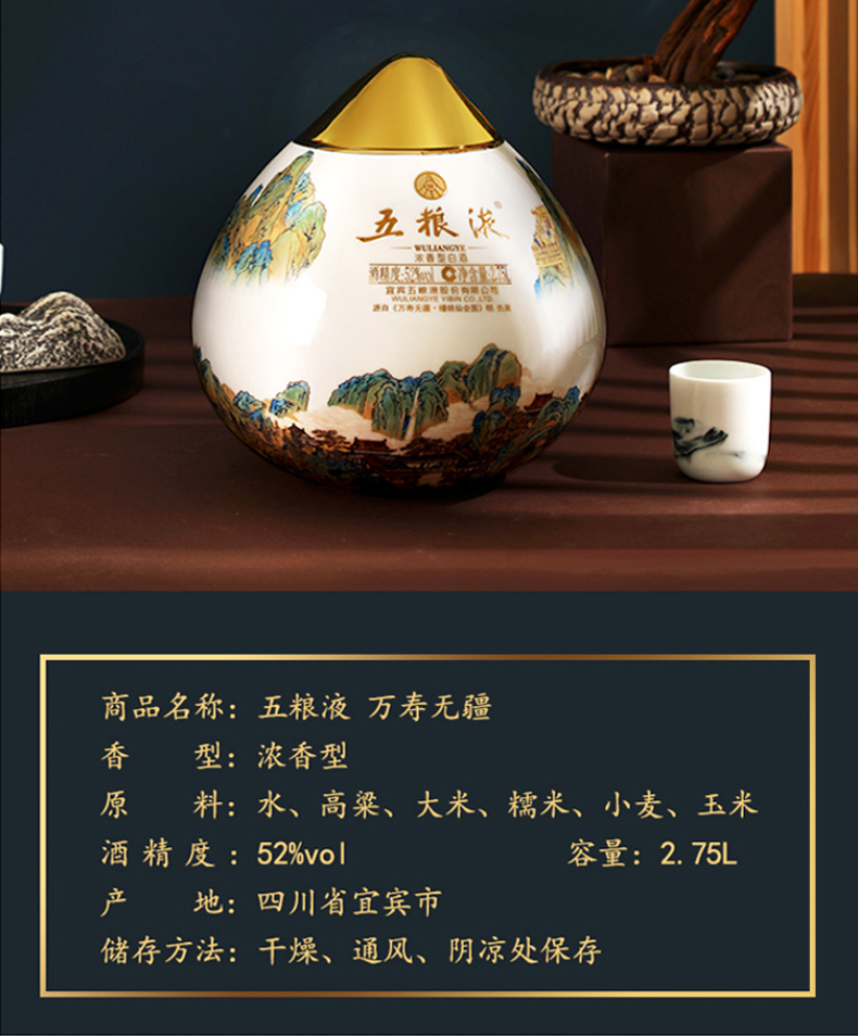 【成都分公司】五粮液·六福系列·万寿无疆 52度 2.75L*1瓶