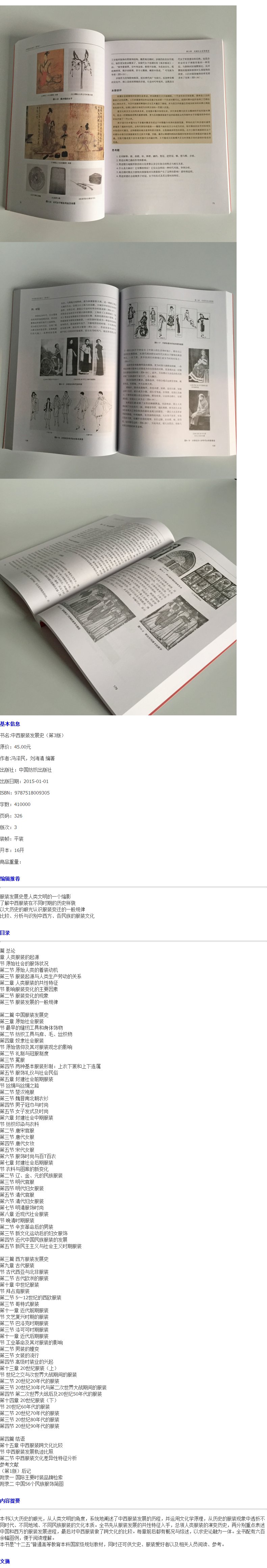 普通高等教育“十一五”国家级规划教材:中西服装发展史(第3版) 可供文史、服装爱好者以及相关人员阅读、参考 配有六百余幅图例