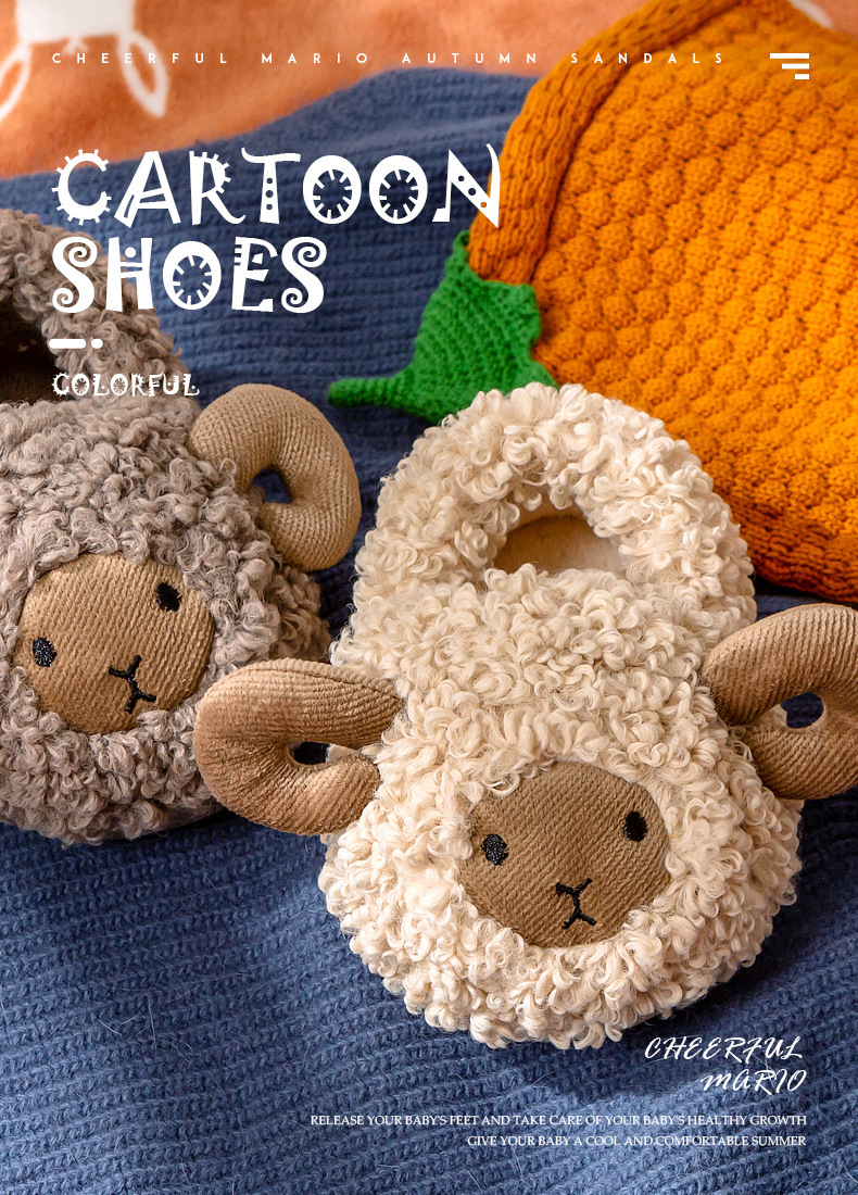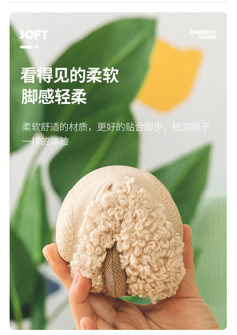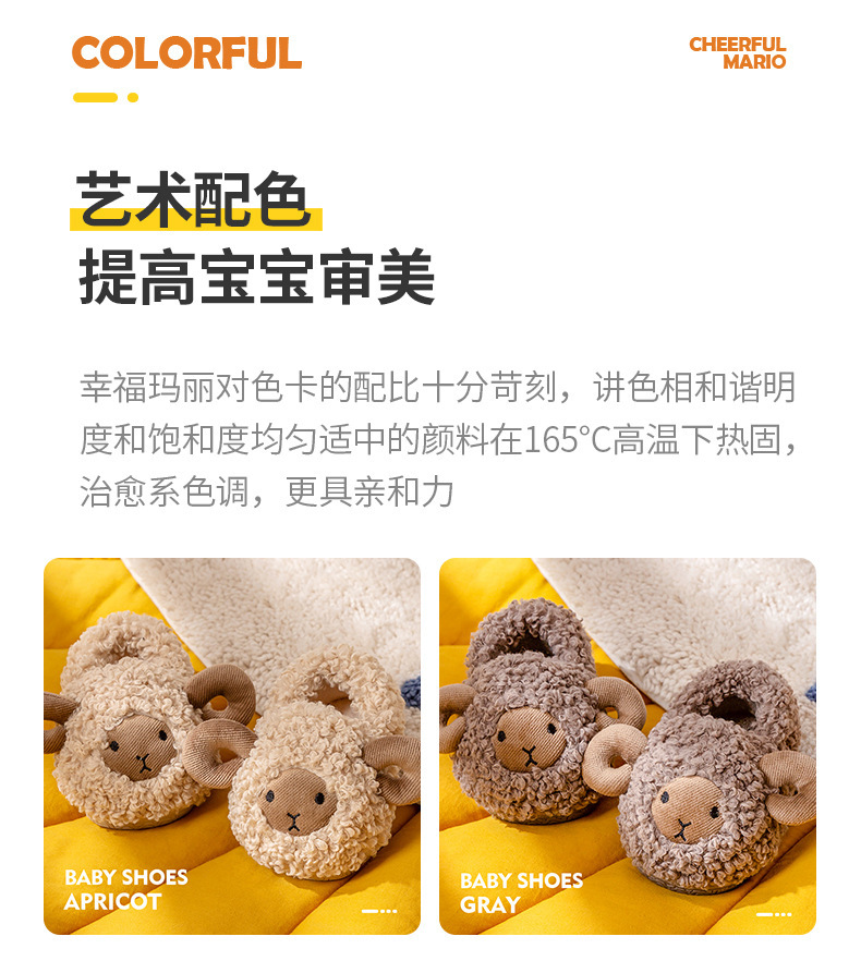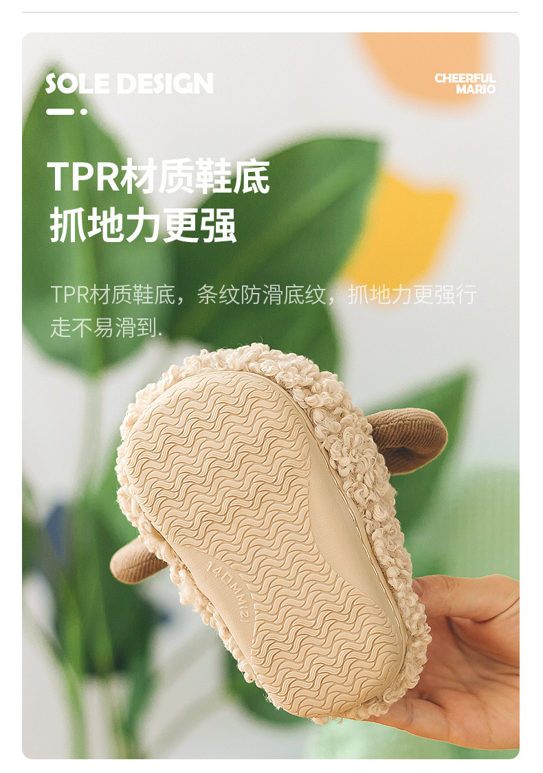幸福玛丽儿童棉拖鞋包跟童鞋秋冬保暖室内毛毛鞋防滑可爱宝宝棉鞋