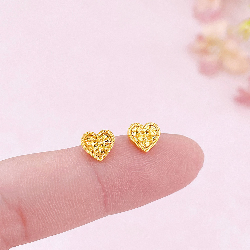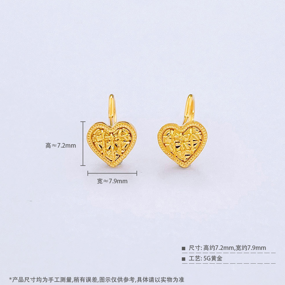 【限时克减150元】足金999 5G黄金网格纹心形耳饰耳钉小香风爱心耳钉(AG5GES00140)(预售产品下单后不退款不退货不换货不补差价)(预售产品下单后不退款不退货不换货不补差价)