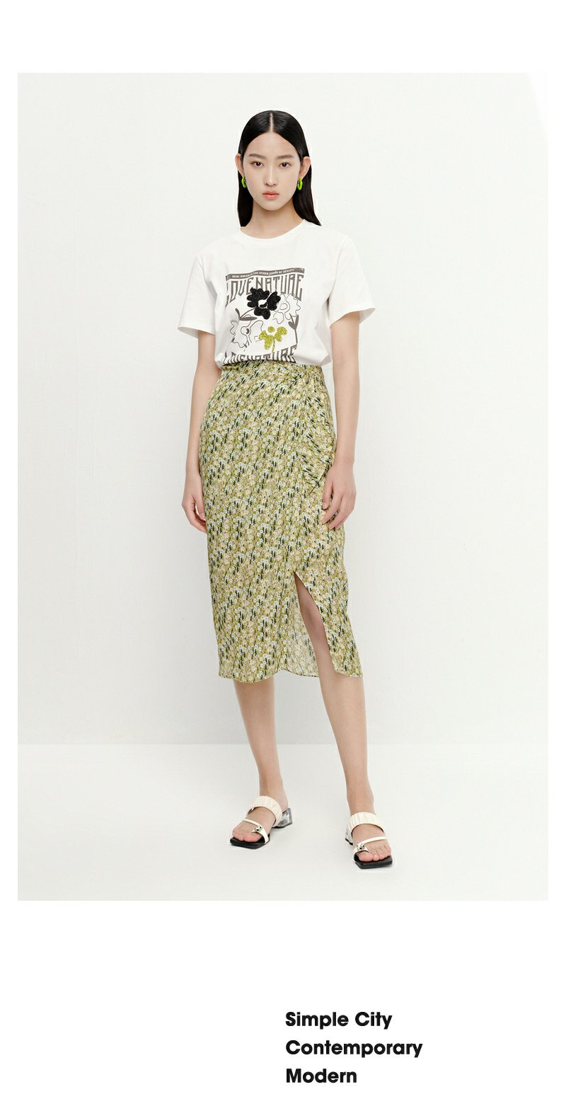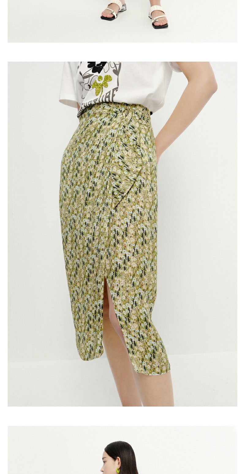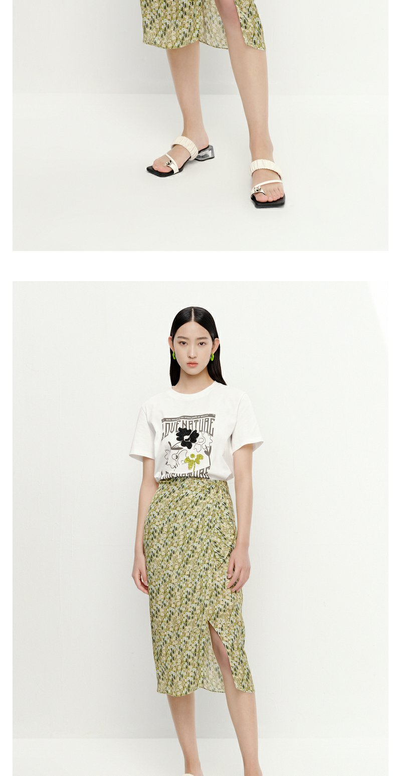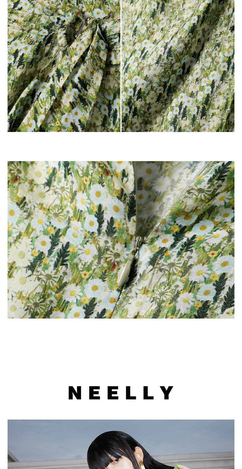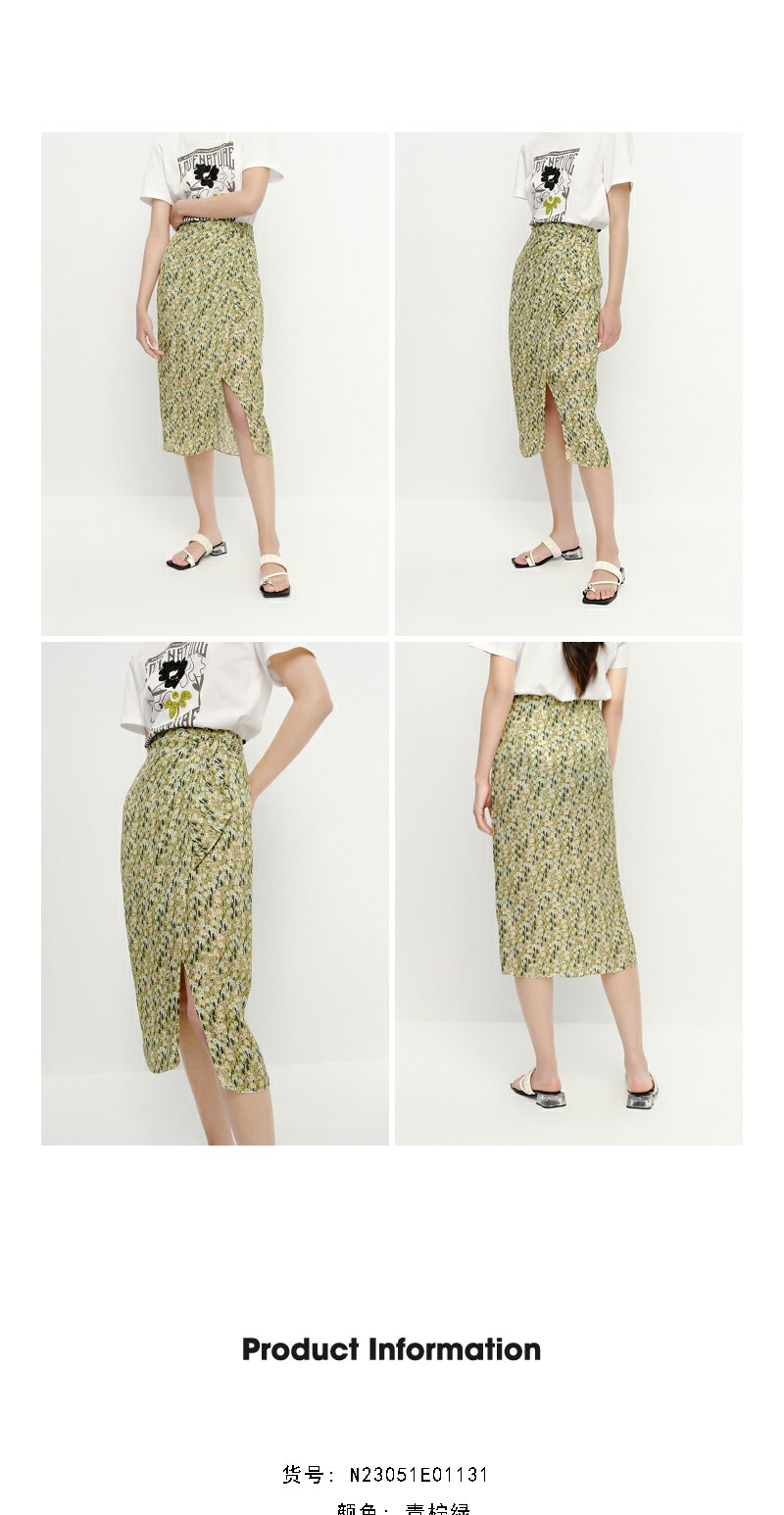 NEELLY纳俪商场同款夏季高腰碎花半身裙女中长款包臀前开叉一步裙N23051E01131