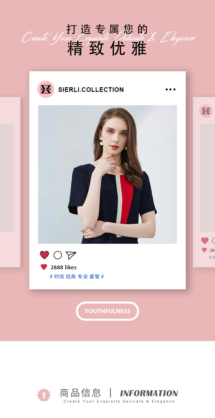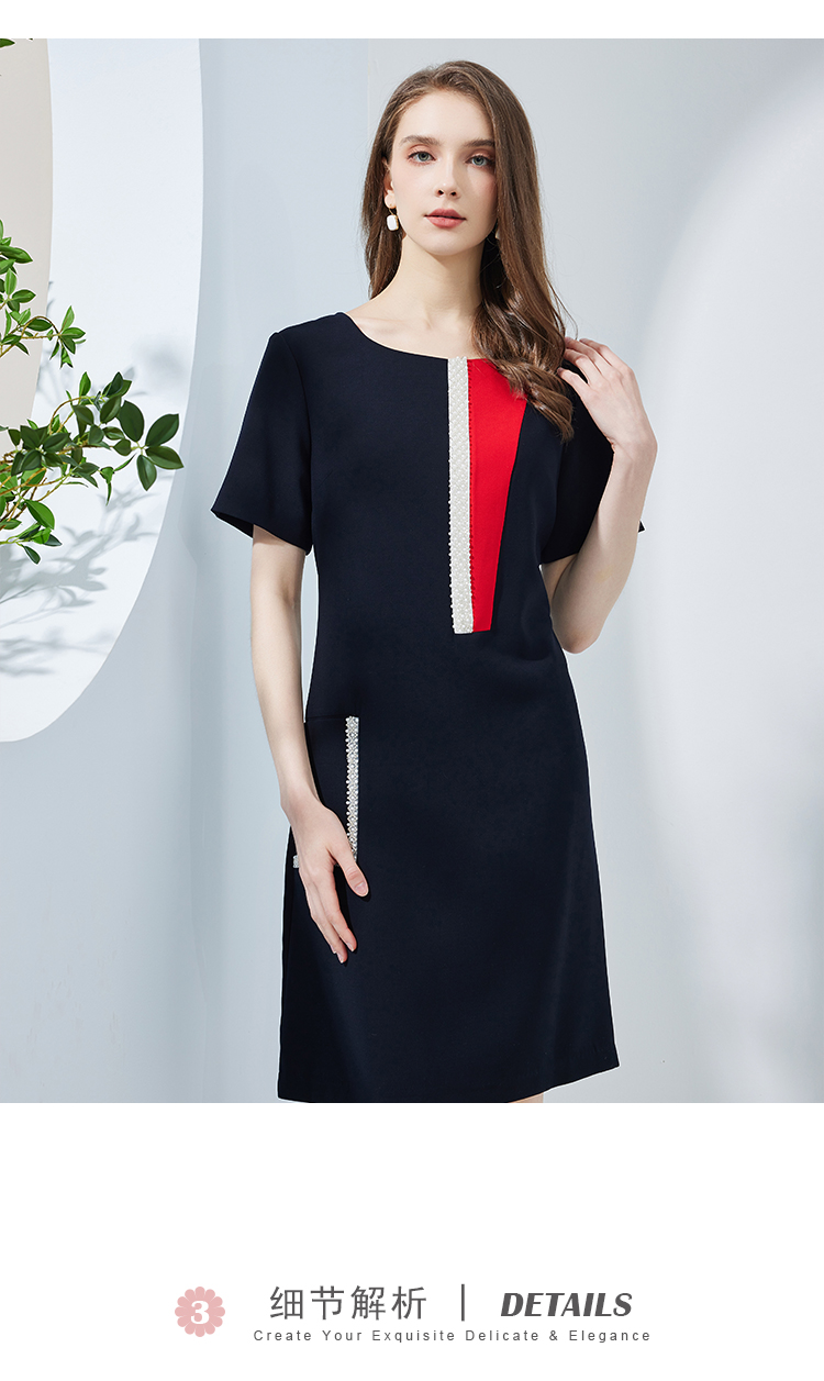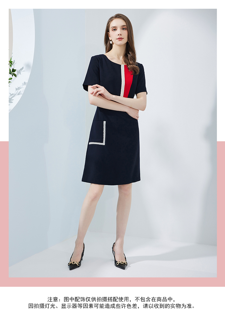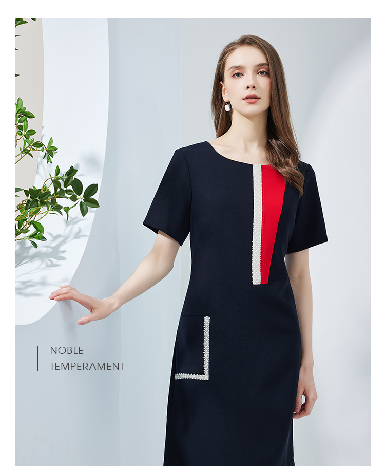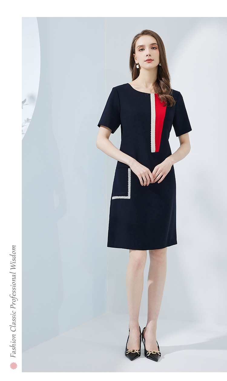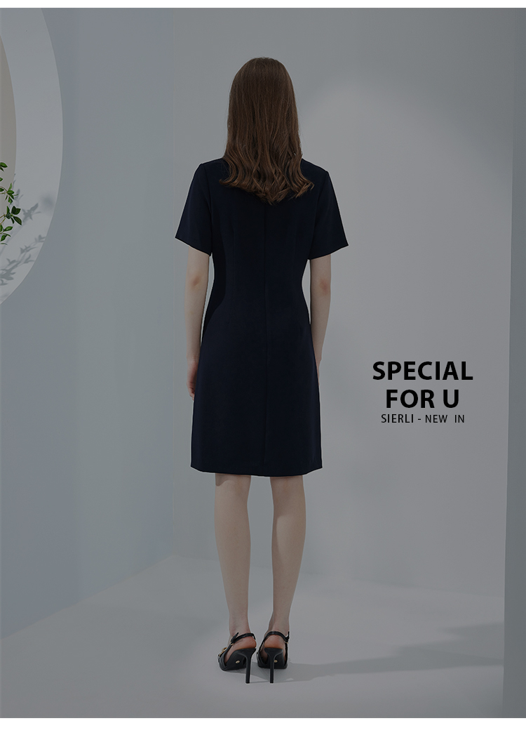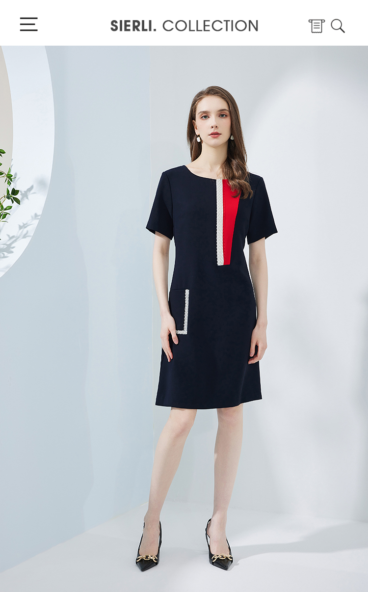 NF8N5斯尔丽瑟俪2023新款夏季时尚设计感不对称撞色口袋修身职业连衣裙