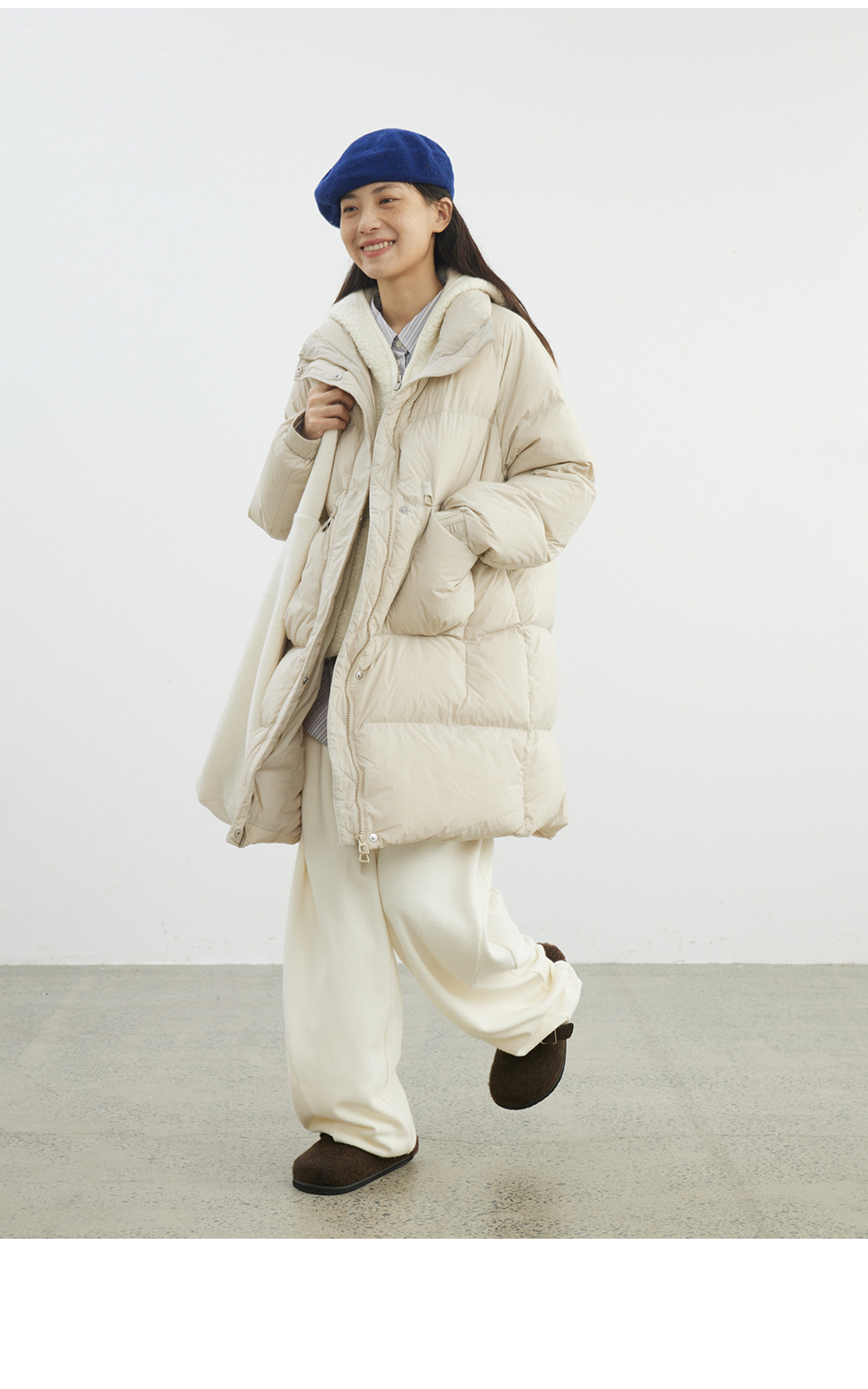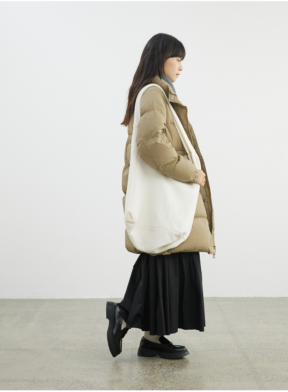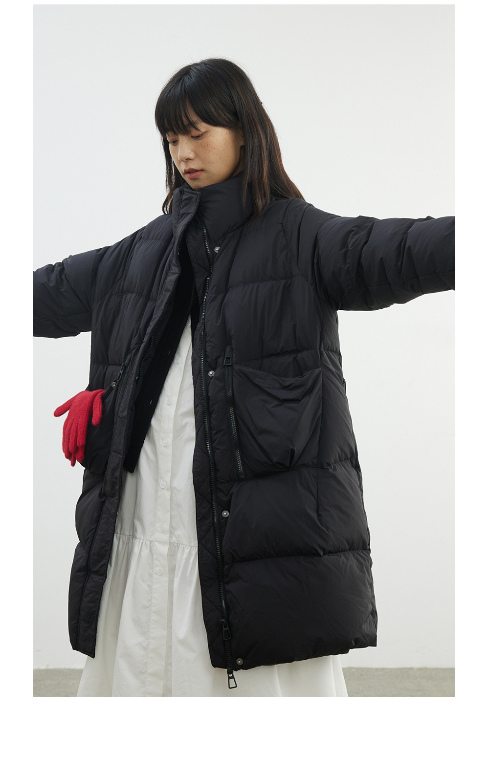 步履不停/4D26009C/通勤简约高领白鸭绒中长款羽绒服