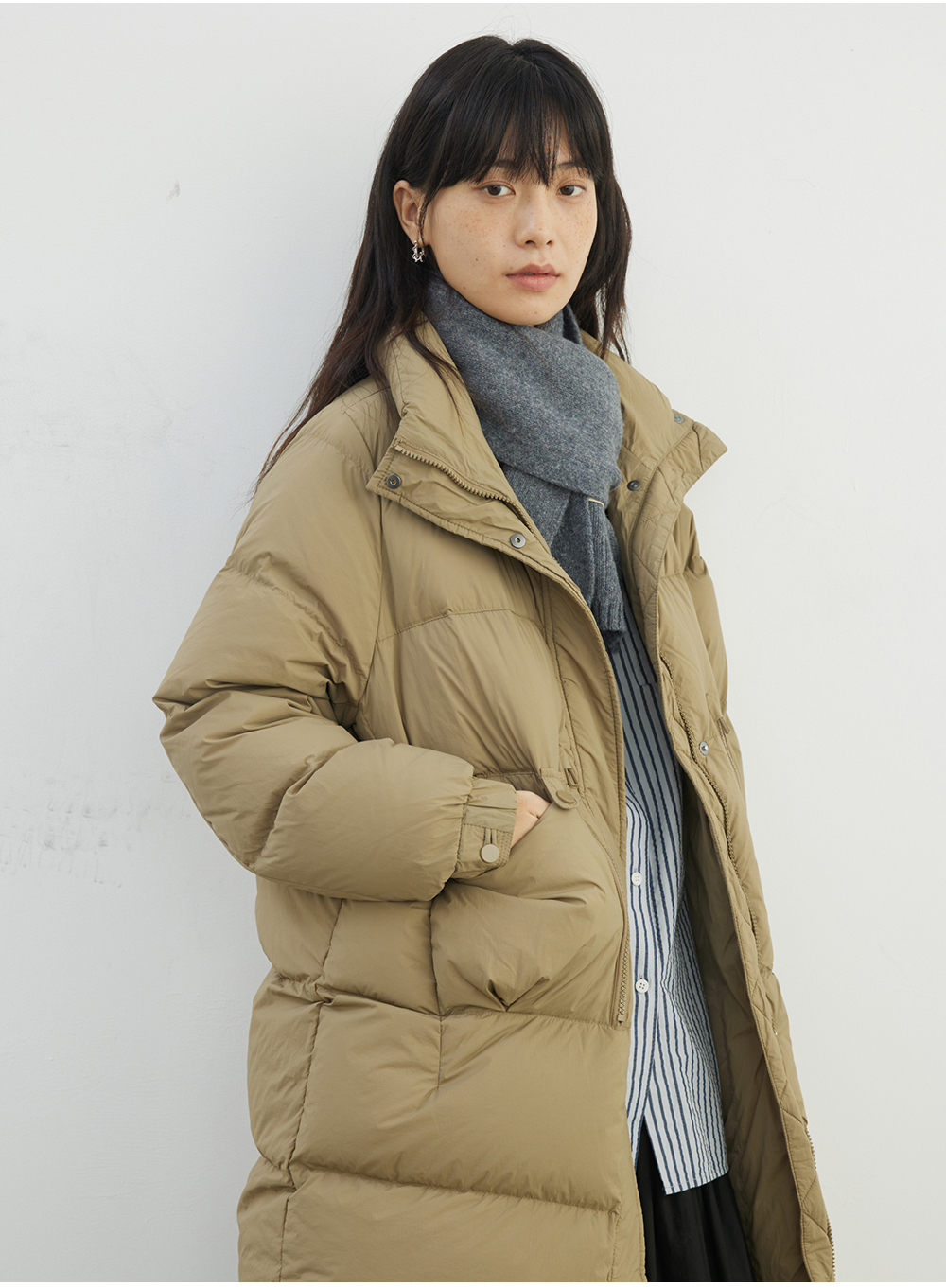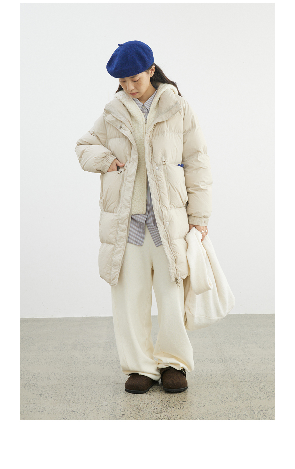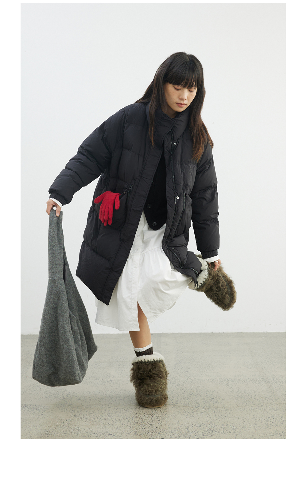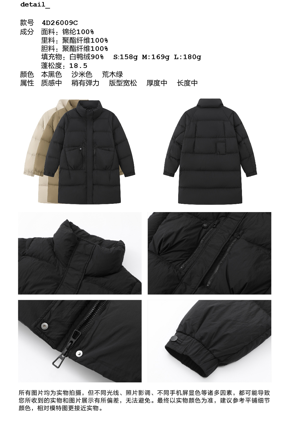 步履不停/4D26009C/通勤简约高领白鸭绒中长款羽绒服