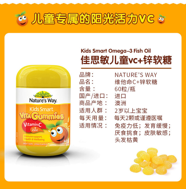 Nature’sWay佳思敏儿童维生素C锌软糖60粒