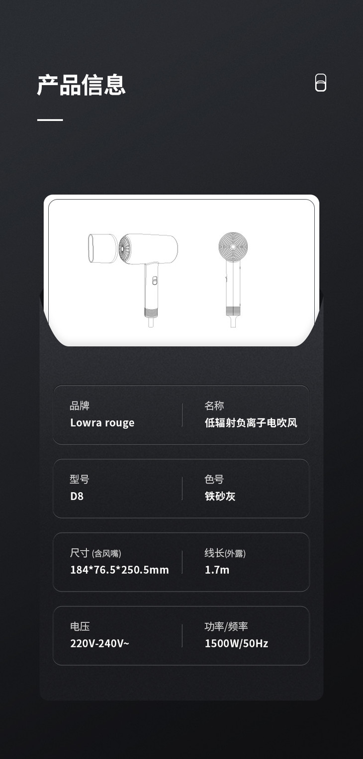 Lowra rouge罗拉D8家用电吹风机负离子护发大功率吹风筒宿舍用学生(TT)★