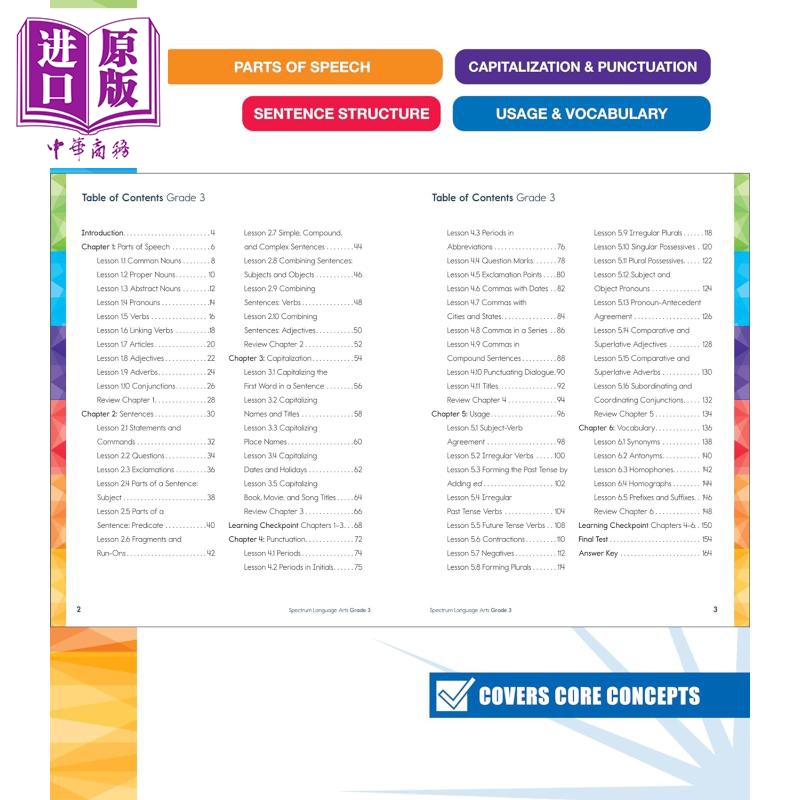 使用 Spectrum Language Arts 三年级练习册支持您孩子的语言艺术学习之旅!