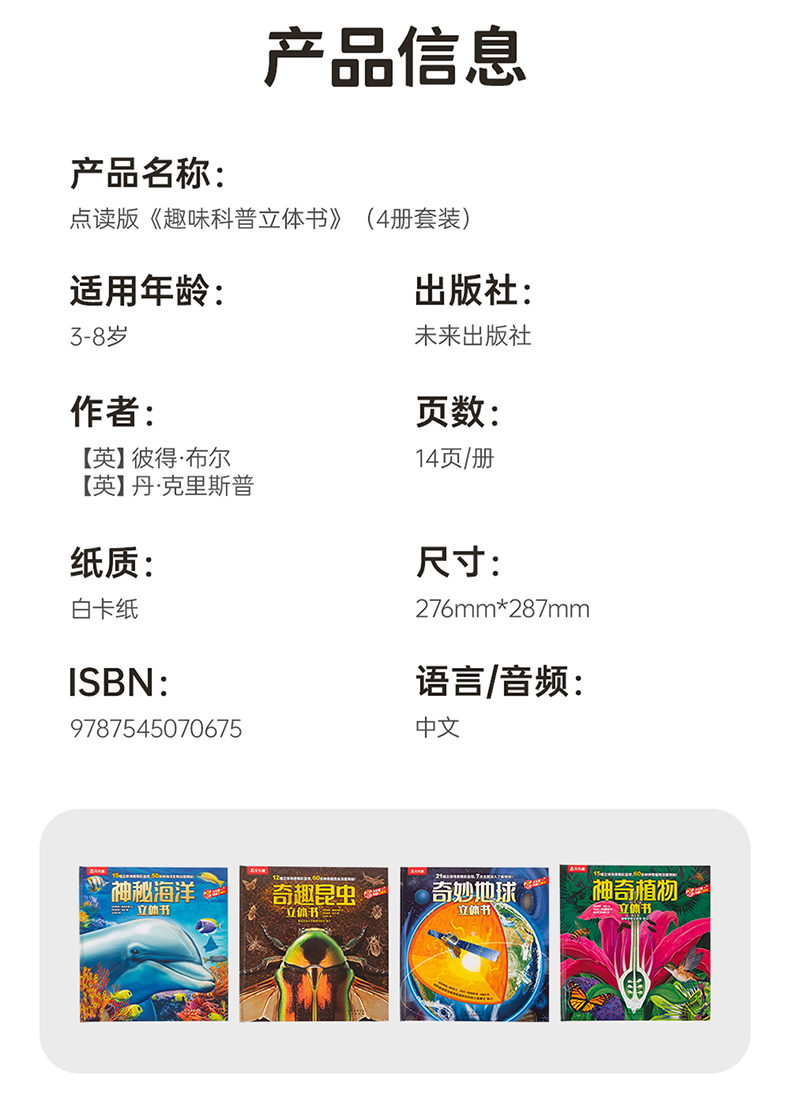 小彼恩出品 趣味科普立体书 4册套装 点读版