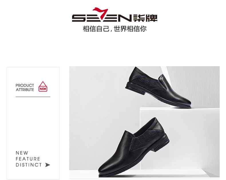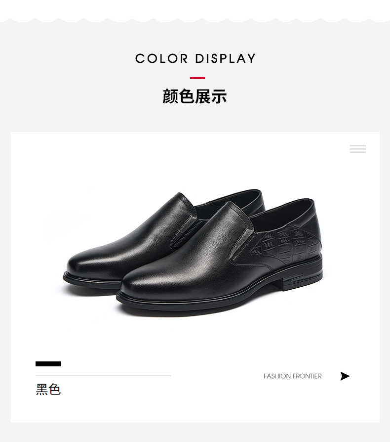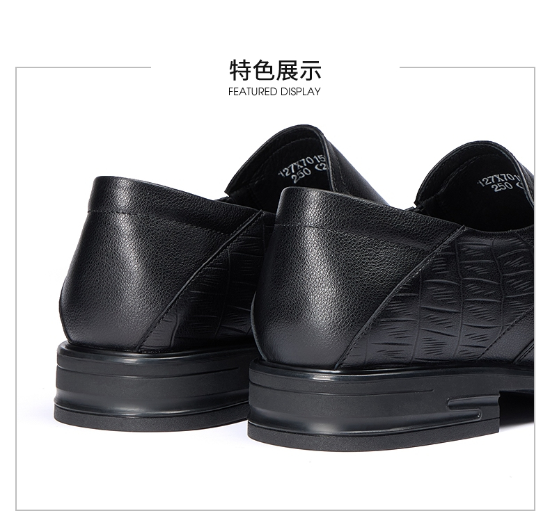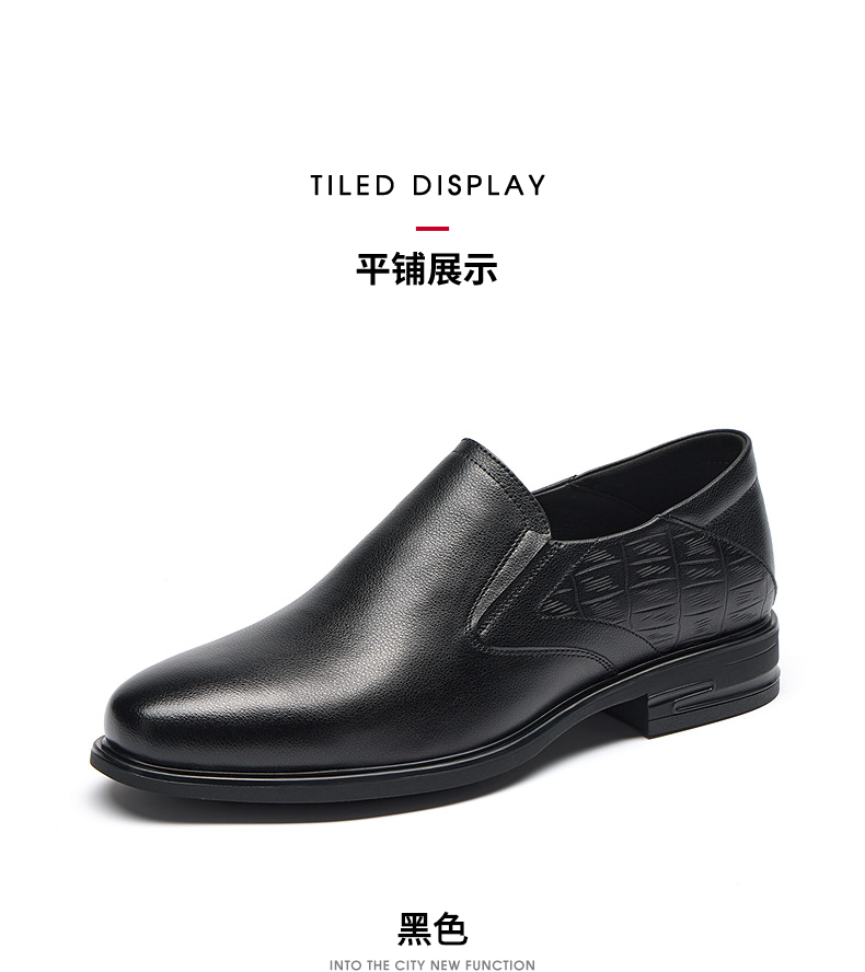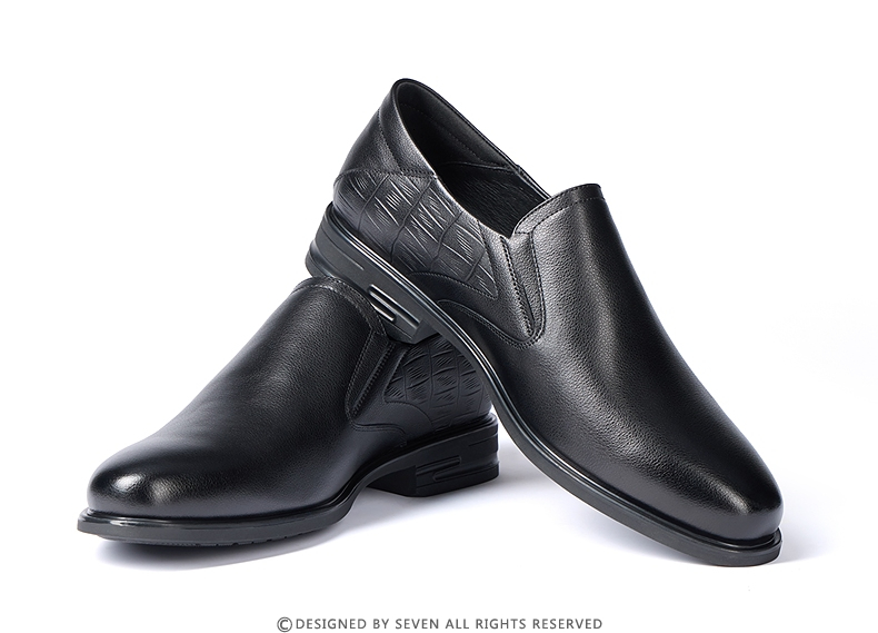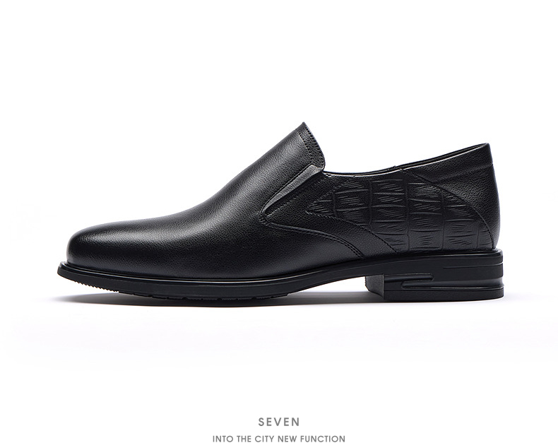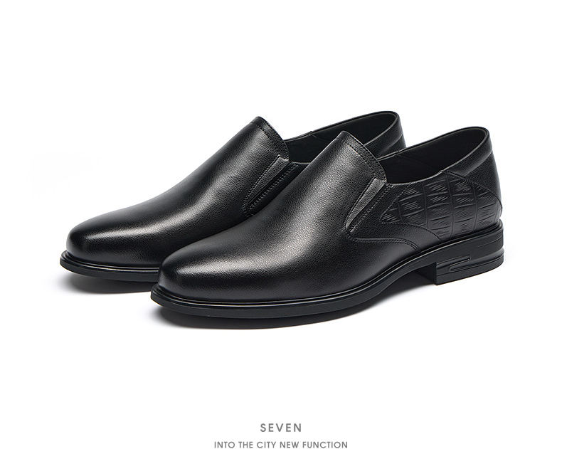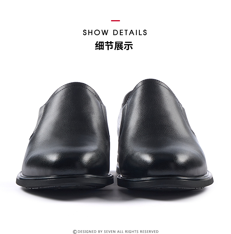 柒牌商务正装鞋男鞋牛皮革2024秋季新款真皮透气一脚蹬男士黑皮鞋 127X70150