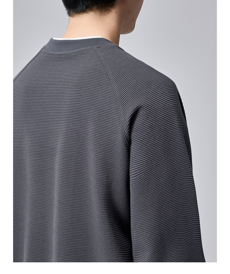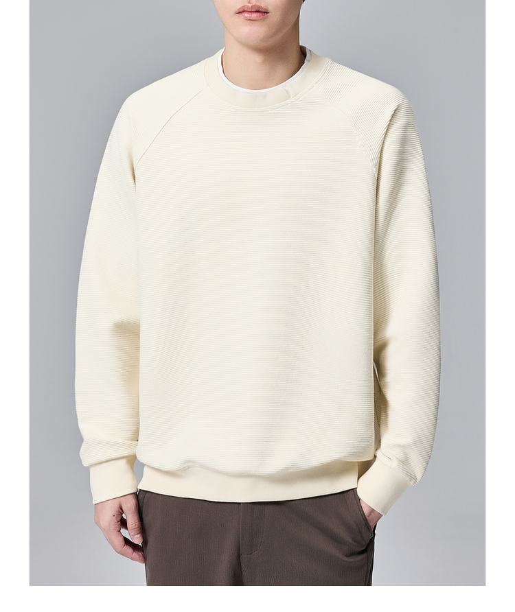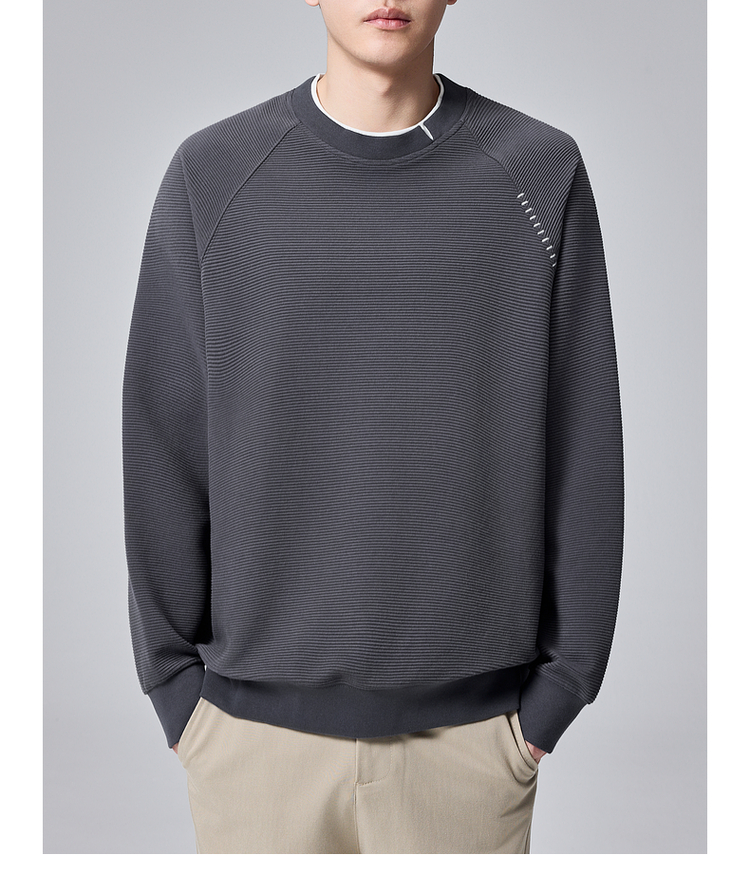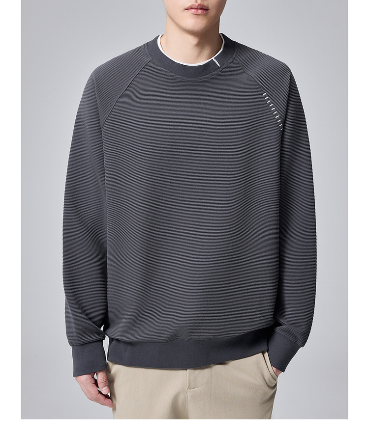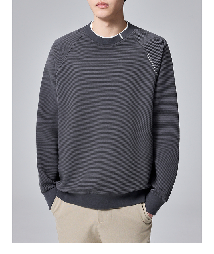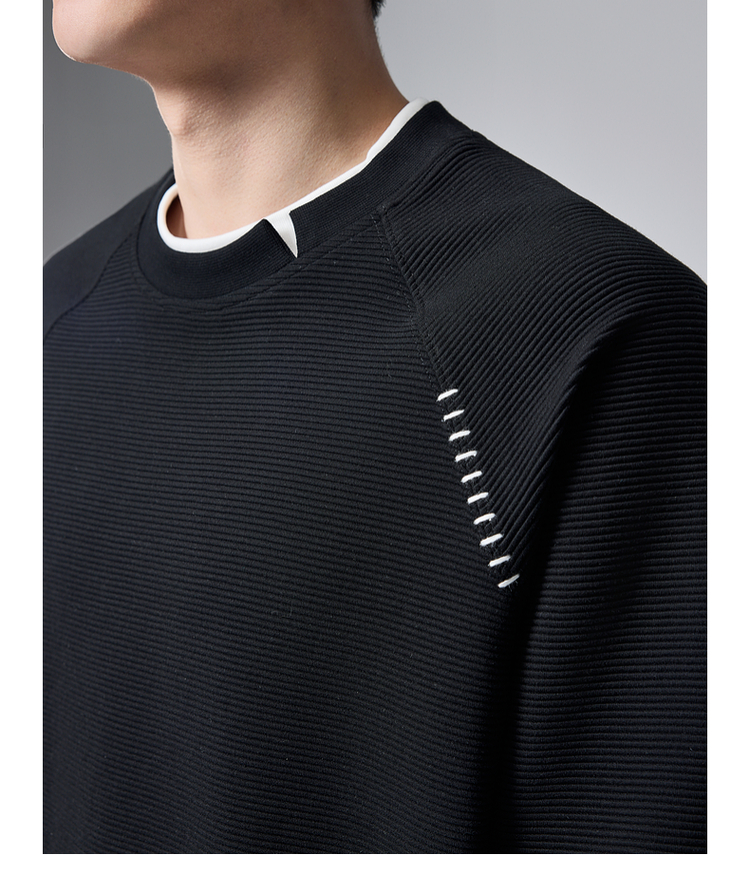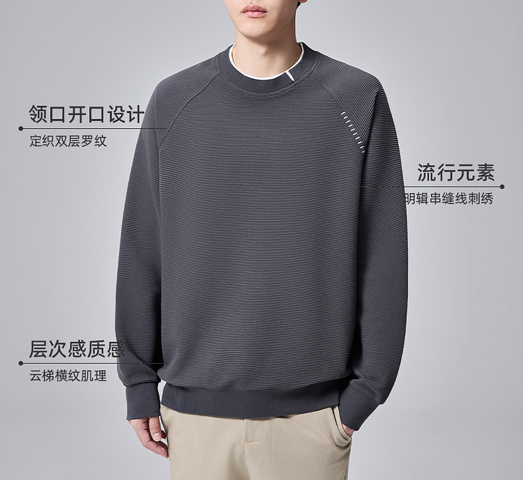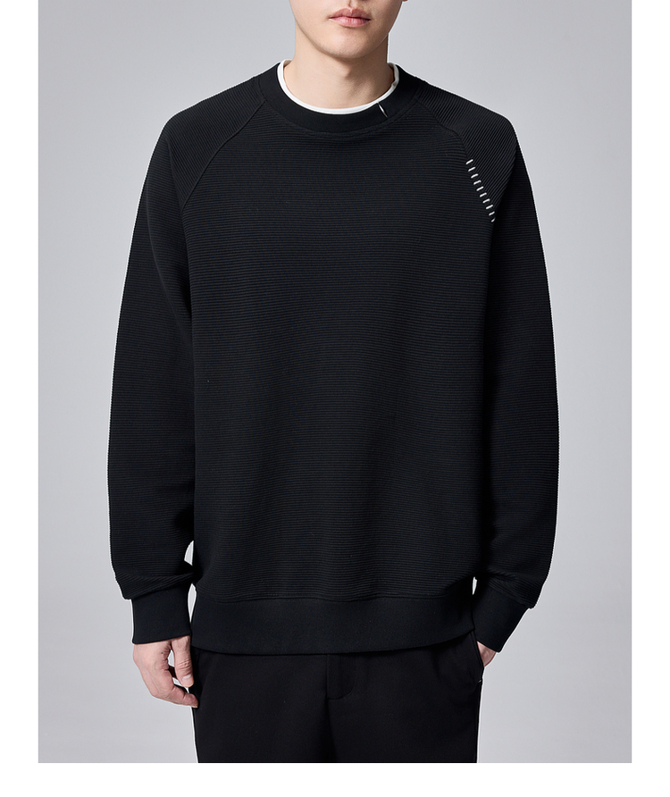 墨麦客男装同色肌理拼接男士休闲圆领卫衣2024秋季新款重磅上衣。