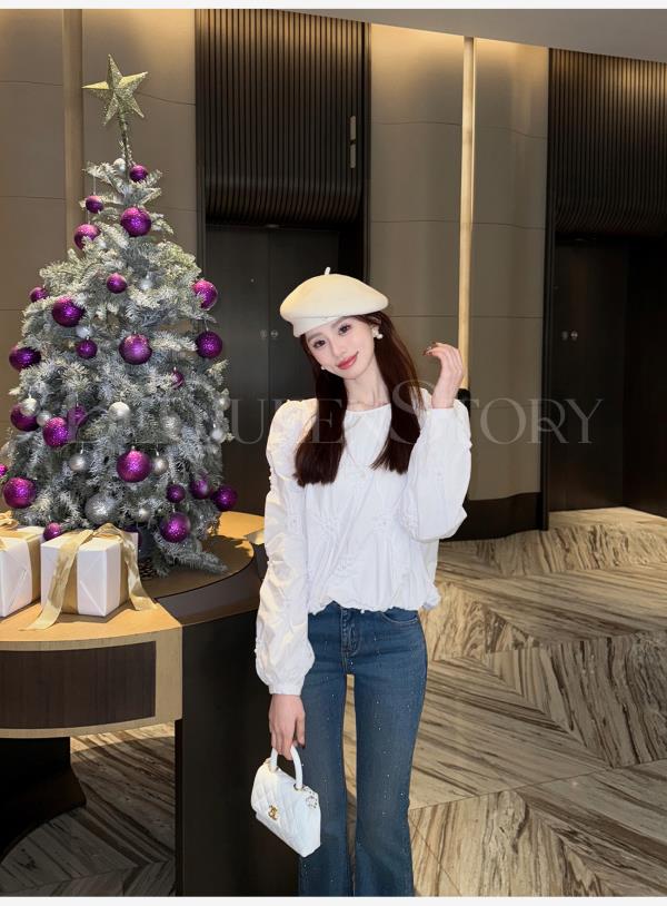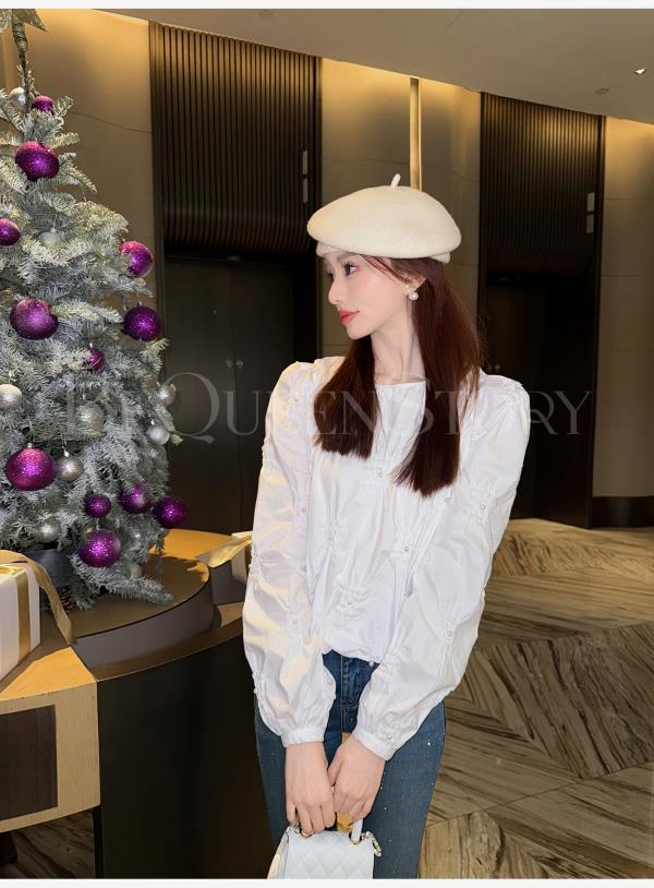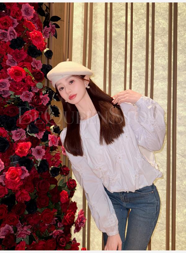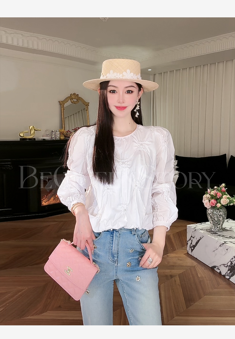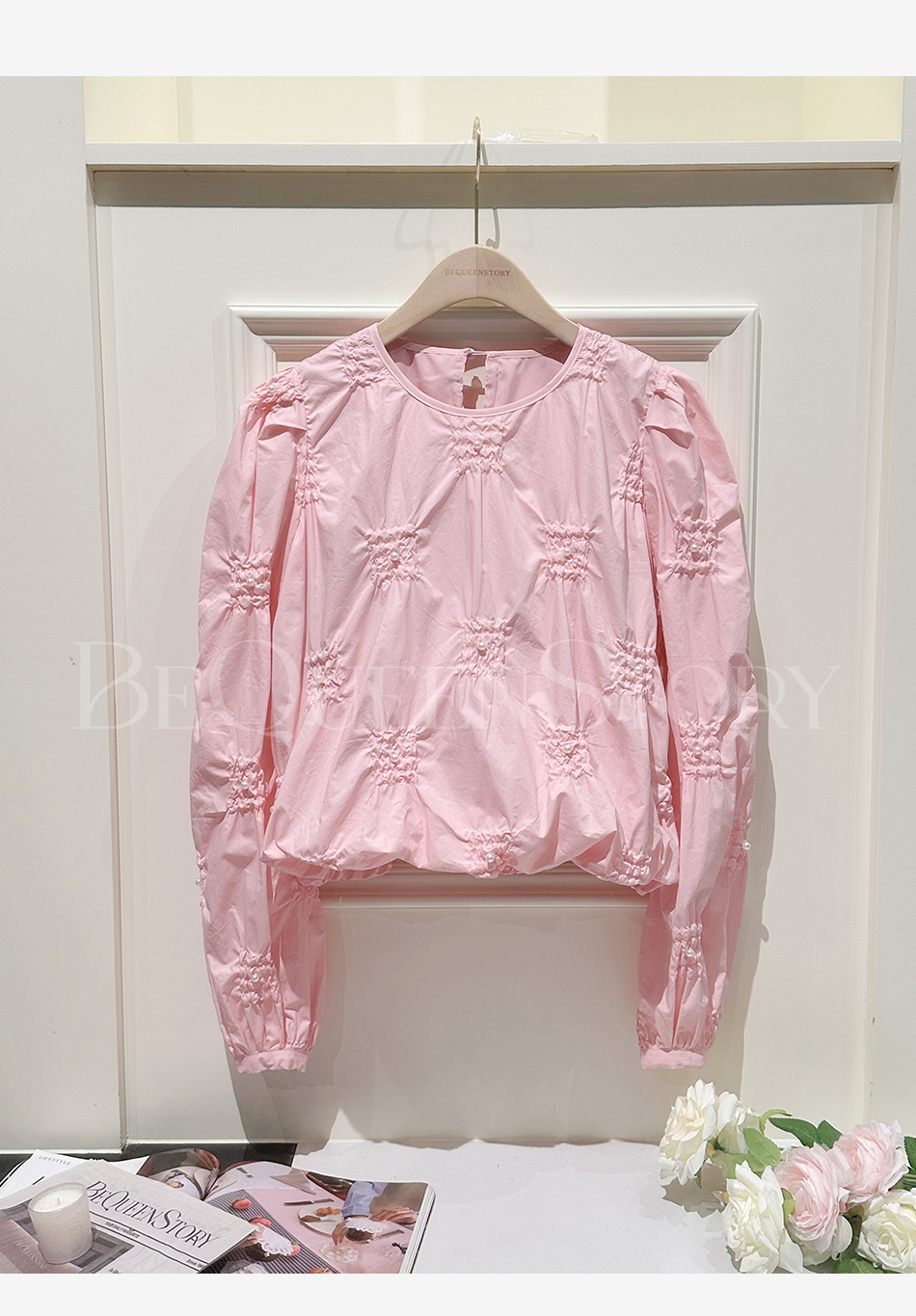 【孤品样衣,不退不换】【茶色花香】高级感欧若风透气法式圆领泡泡袖棉感上衣