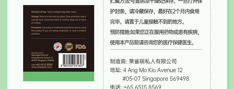 【保税】新加坡维乐原(VitaRealm)护肝片 60粒/瓶
