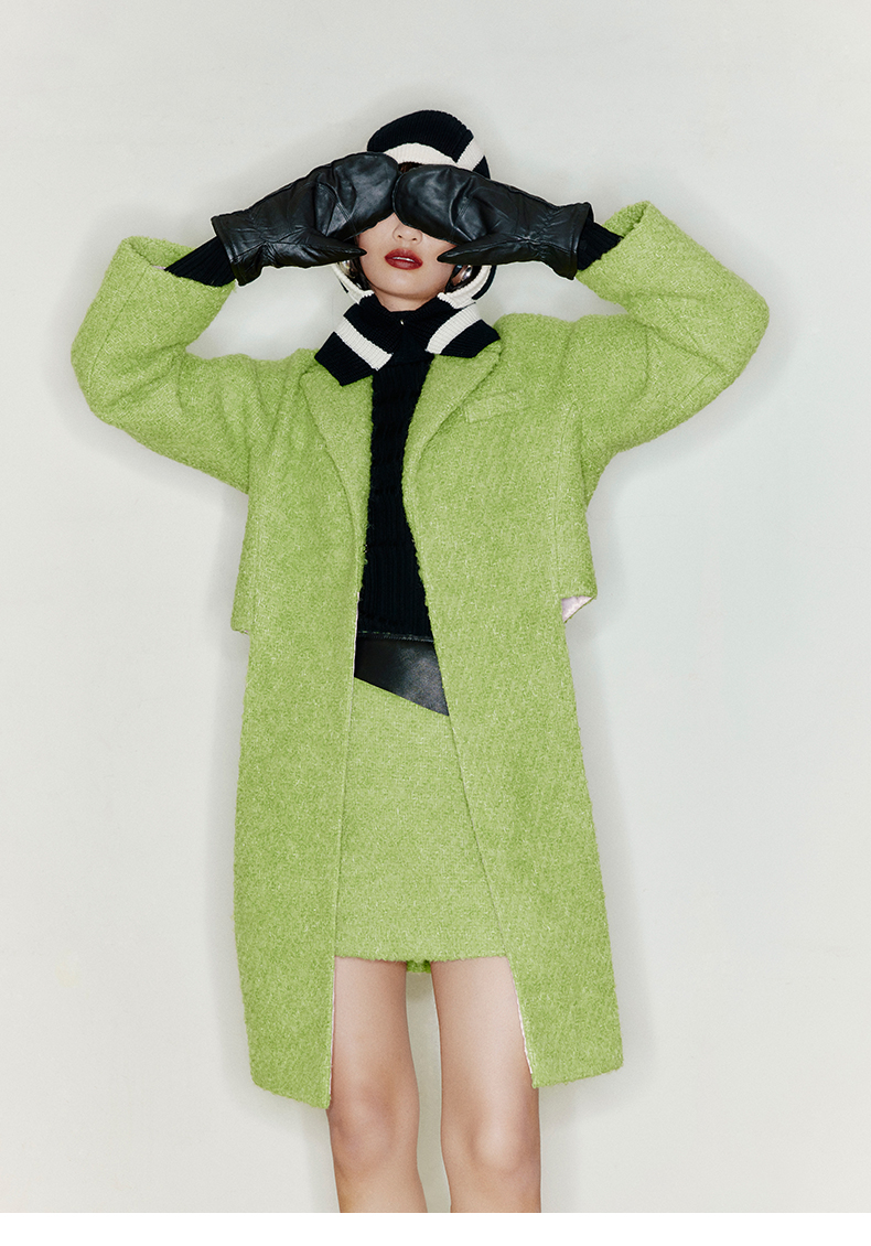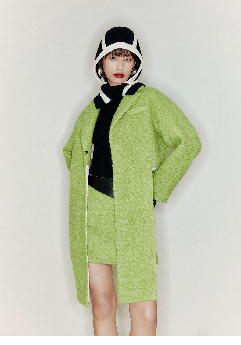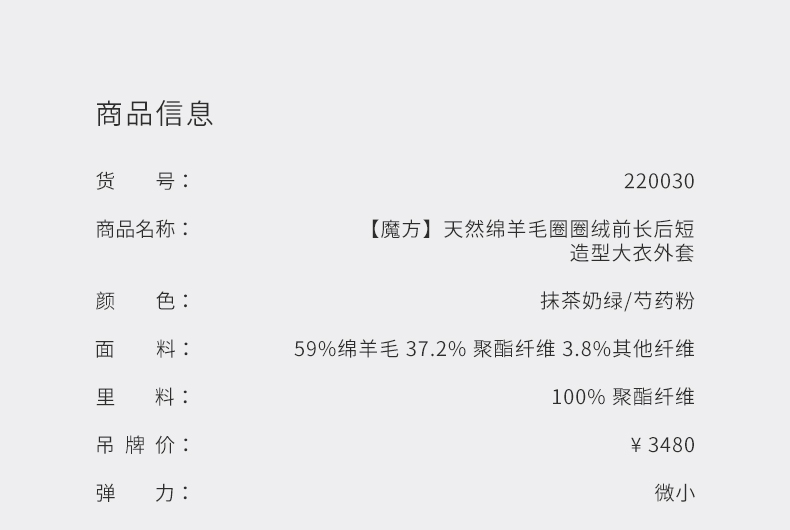 【魔方】天然绵羊毛圈圈绒前长后短造型大衣外套/220030