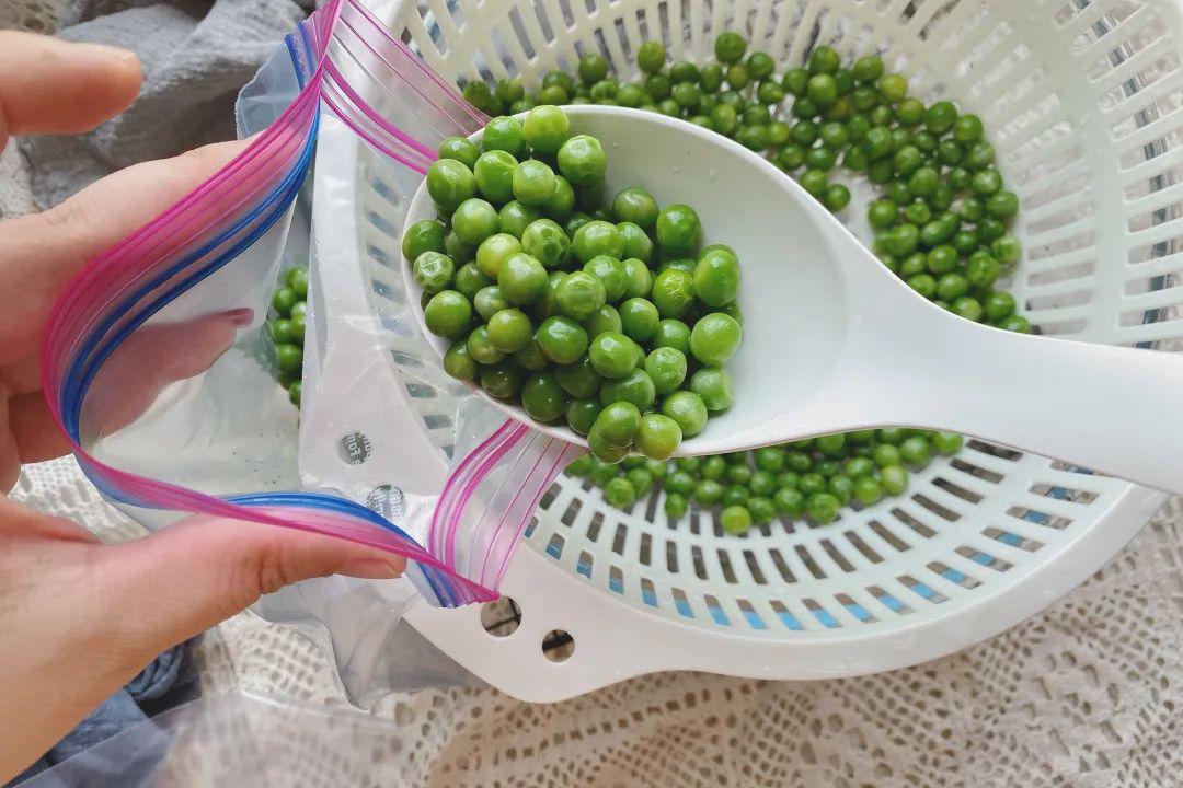 6、冷冻或冷藏 分装好之后放在冰箱冷冻保存,可以保存一年左右都不坏,随吃随取很方便 焯水之后的豌豆放冰箱冷藏可以保存一周