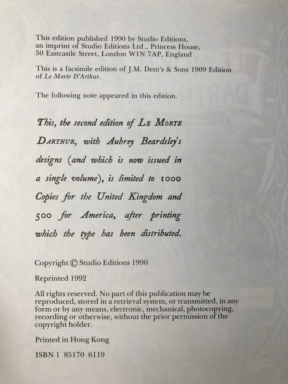 比亚兹莱经典插图 马洛礼《亚瑟王之死》(1992) 精装大16开带书匣