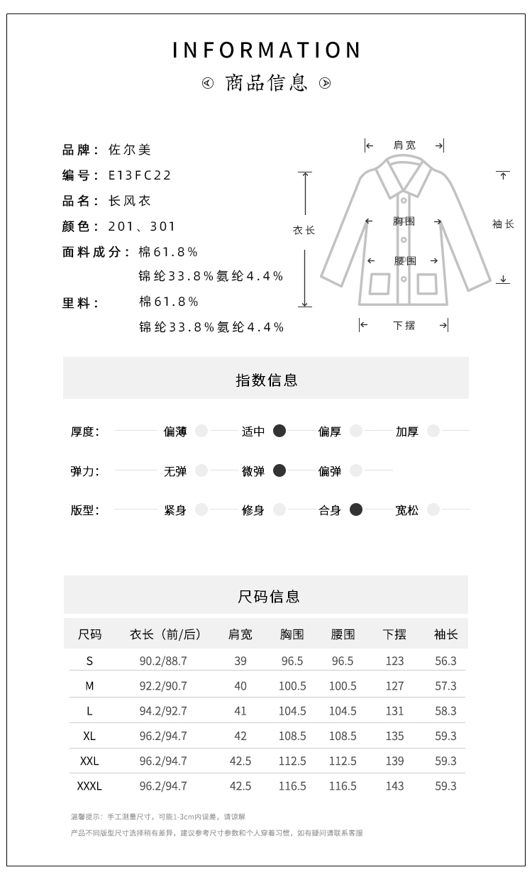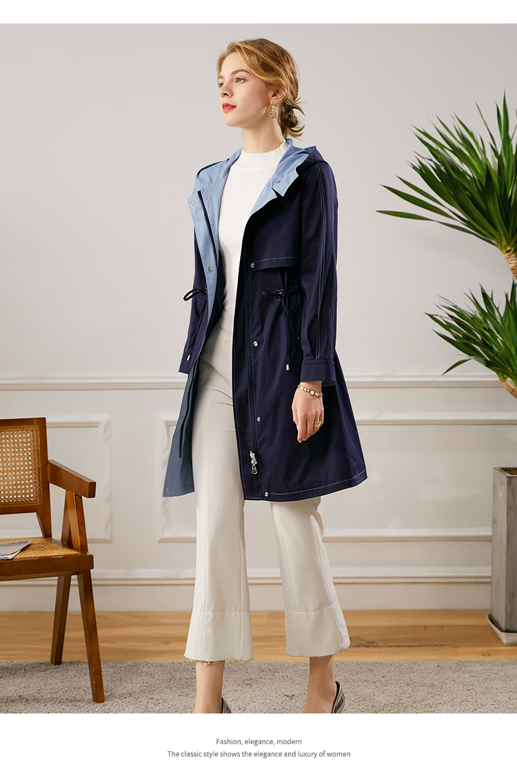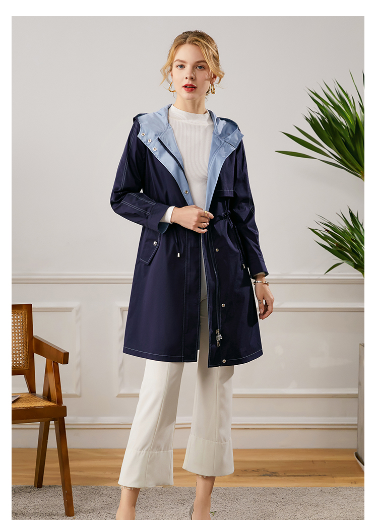 佐尔美2021秋季新款 时尚休闲修身双面穿长风衣女E13FC22