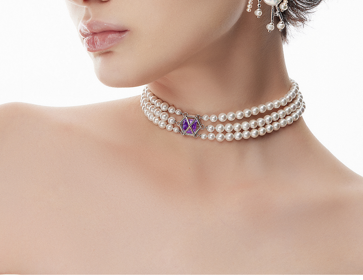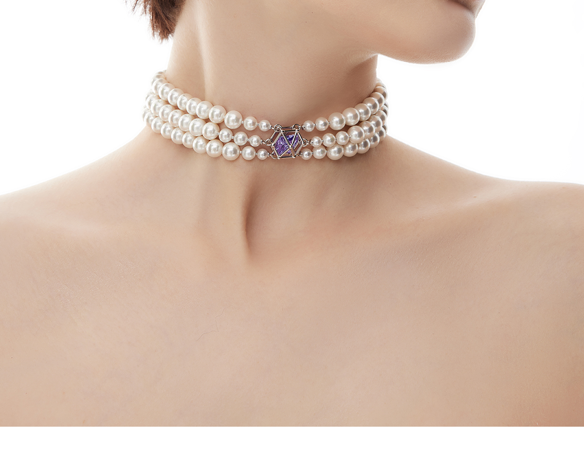 [捡漏价]lost in echo设计师款宝石猎人三层珍珠彩色锆石盒子chocker项链