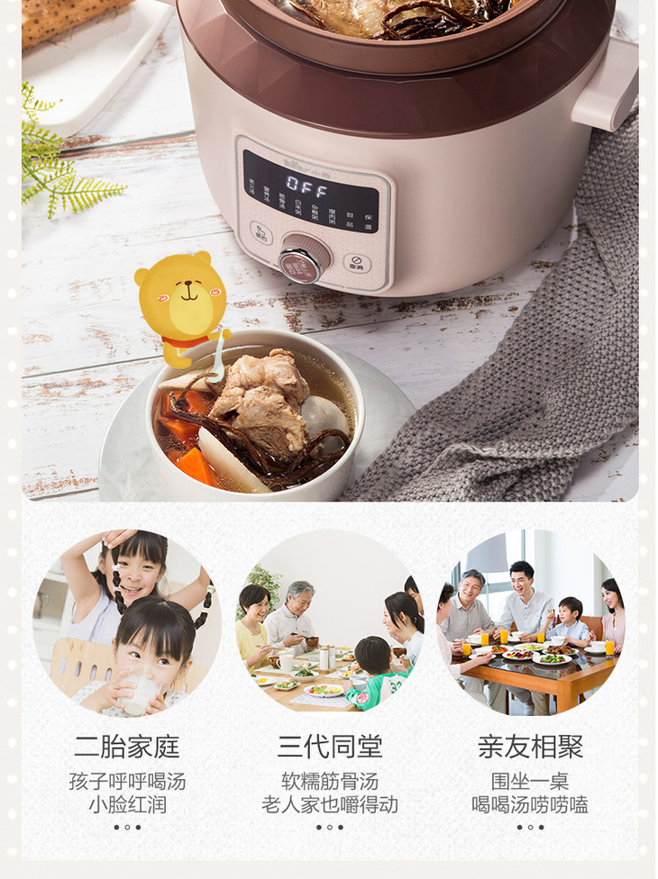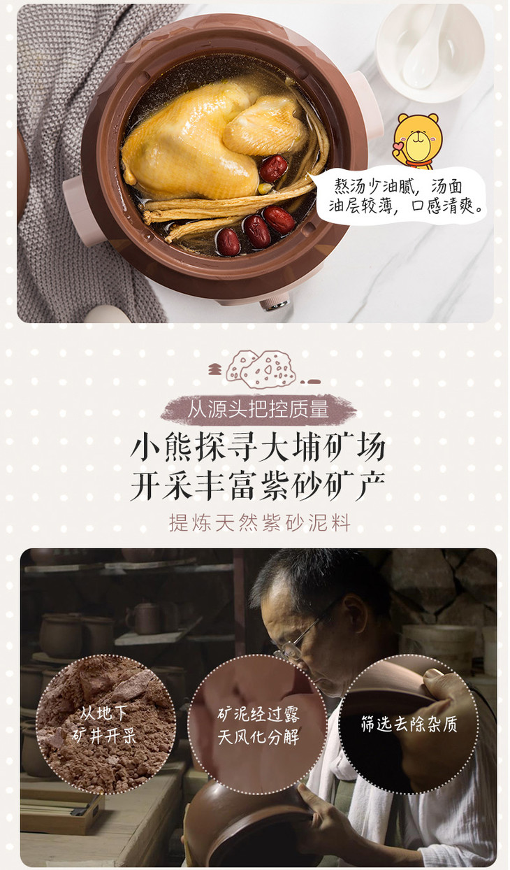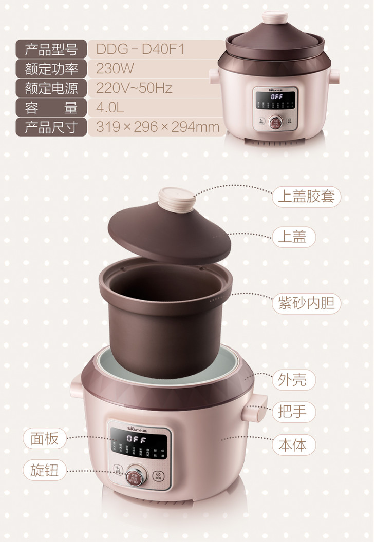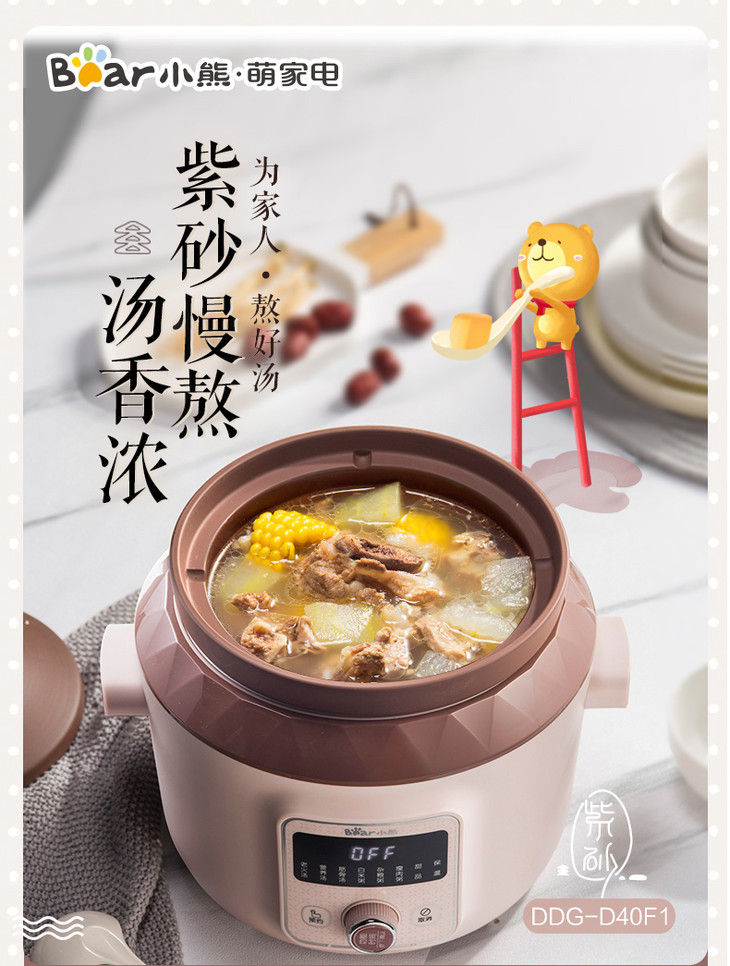 小熊(Bear)电炖锅电炖盅电砂锅紫砂锅煲汤锅炖汤锅煮粥大容量全自动4L DDG-D40F1