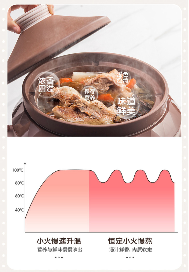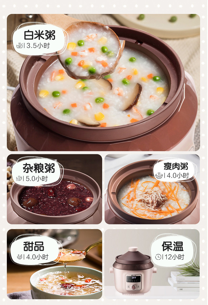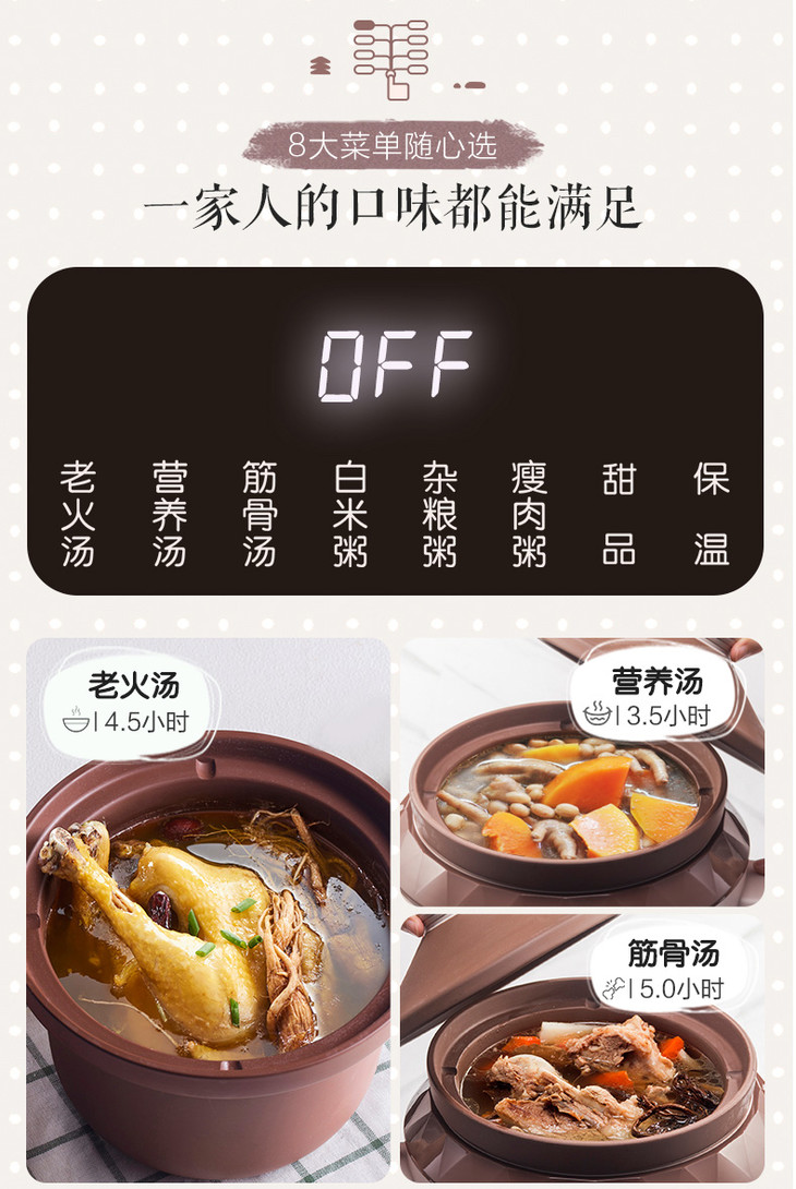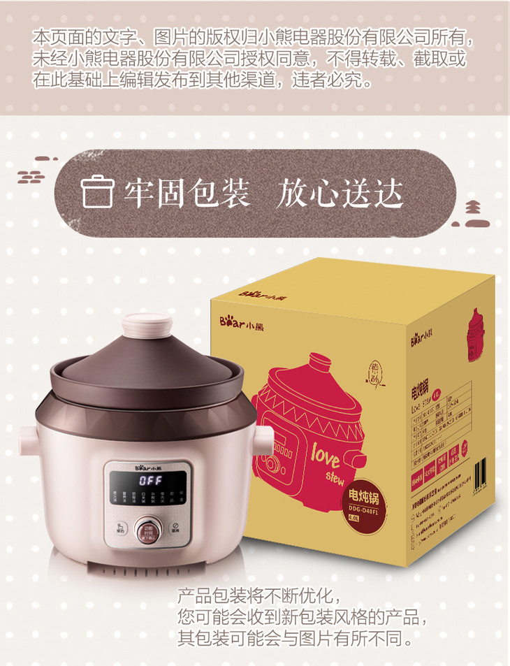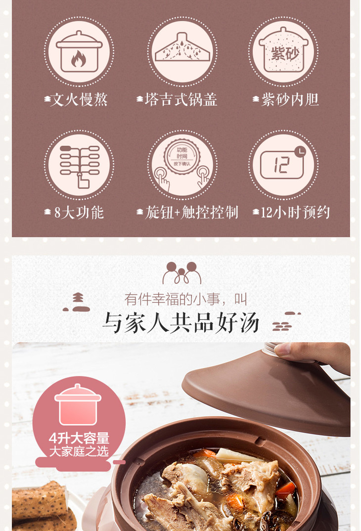 小熊(Bear)电炖锅电炖盅电砂锅紫砂锅煲汤锅炖汤锅煮粥大容量全自动4L DDG-D40F1