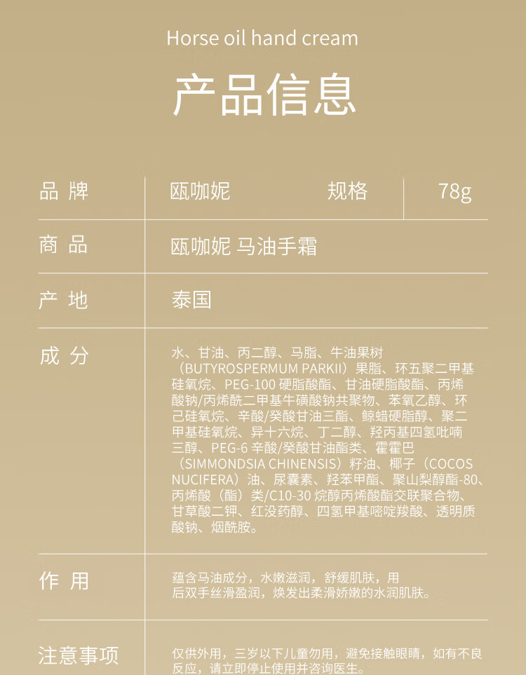 瓯咖妮马油护手霜补水保湿淡化细纹舒缓肌肤 78g