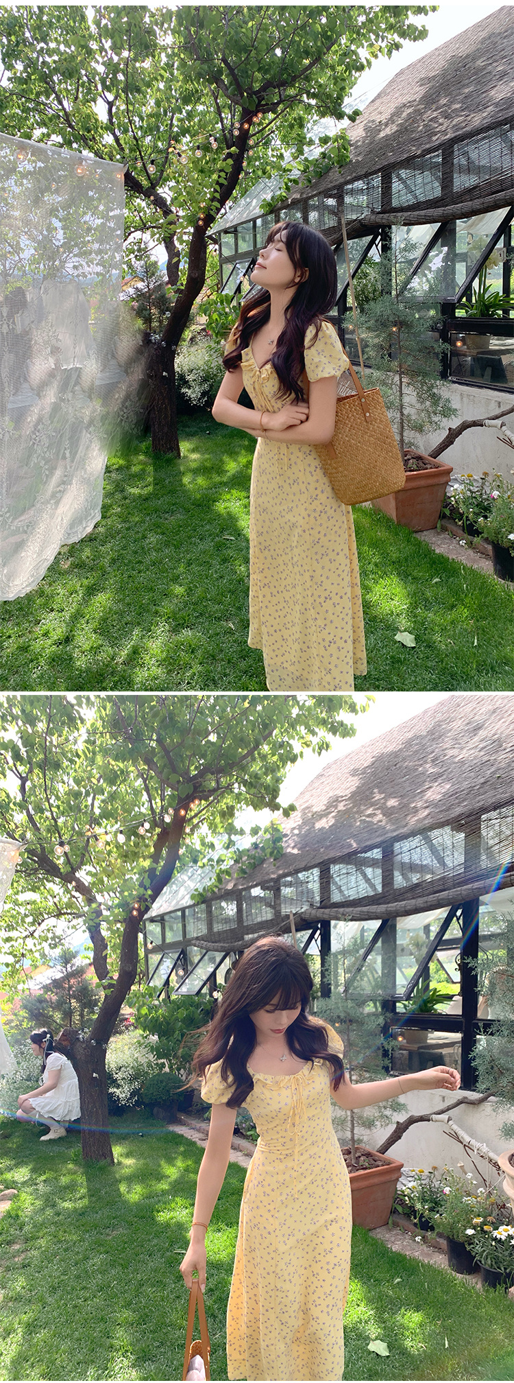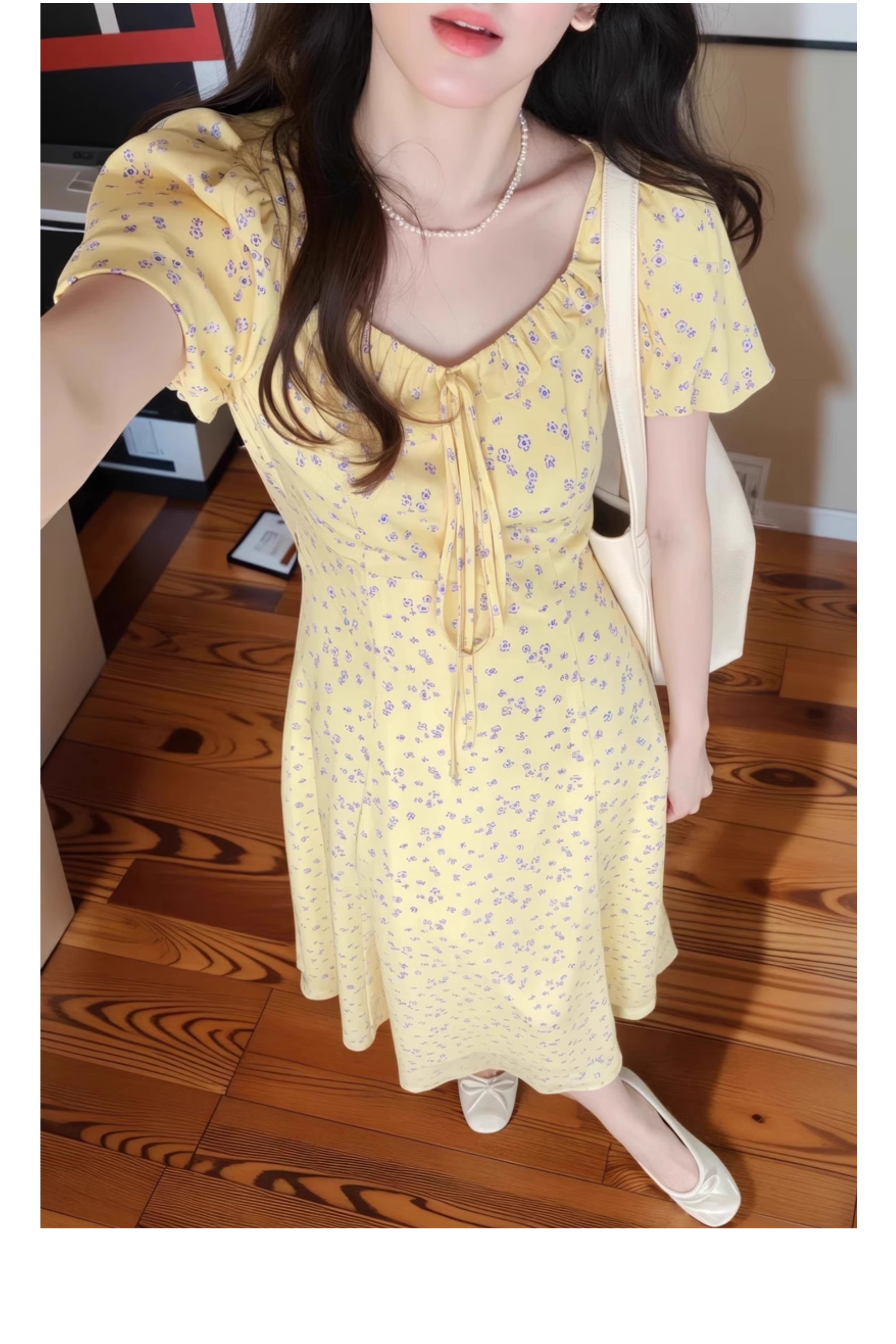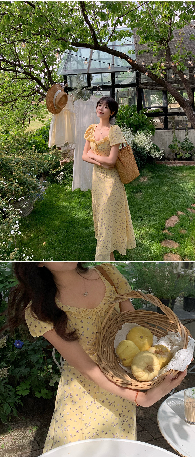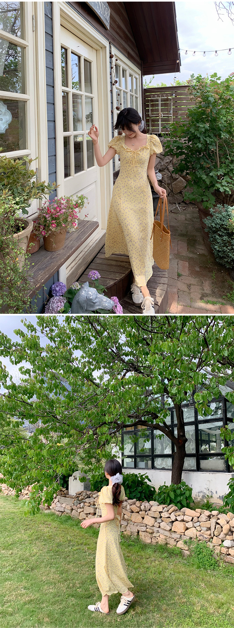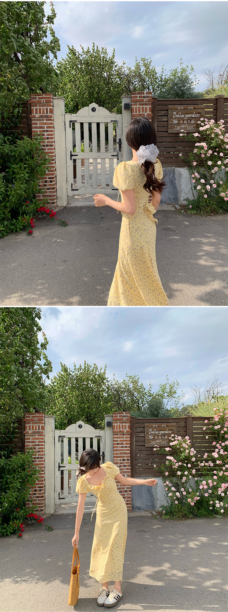 一袭淡黄碎花连衣裙 是春日写给人间的情诗 方领设计恰到好处地露出精致锁骨与修长脖颈 瞬间提升优雅气质 修饰脸型效果也十分出众 腰间的系带,勾勒曼妙身姿 每一步都似摇曳生姿的舞步 凸显身材曲线,打造迷人S型