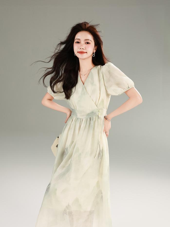 ACUE9978【见青山】新中式国风连衣裙,
