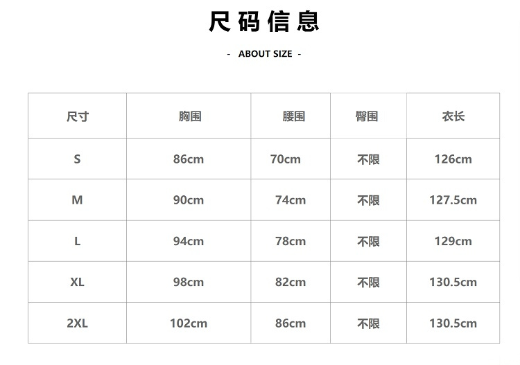 款式五:ACUE9060优雅气质显白蓝色印花法式短袖连衣裙 [材质] 100%涤纶 [颜色]蓝色 [尺码]S-2XL S:裙长126/胸围86/腰围70 (建议80-90斤) M:裙长127.5/胸围90/腰围74 (建议90-100斤) L:裙长129/胸围94/腰围78 (建议100-110斤) XL:裙长130.5/胸围98/腰围82 (建议110-120斤) 2XL:裙长130.5/胸围102/腰围86 (建议120-130斤)