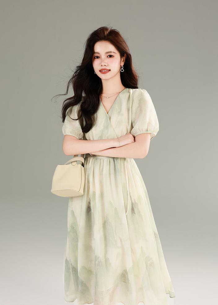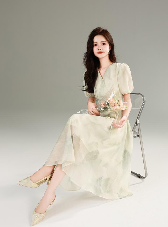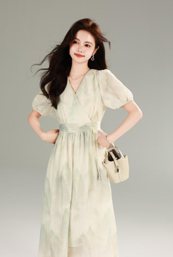 搭配泡泡短袖太绝了 —— 拜拜肉、副乳全藏进柔软的面料里, 手臂线条被衬得又细又白 裙摆是垂坠感超棒的料子 走路时像裹着一层薄雾 胯宽腿粗的姐妹穿上直接 “隐身” 梨形身材穿更是绝 腰线一掐,裙摆一飘 谁看了不说句 “这身材太会长了”!