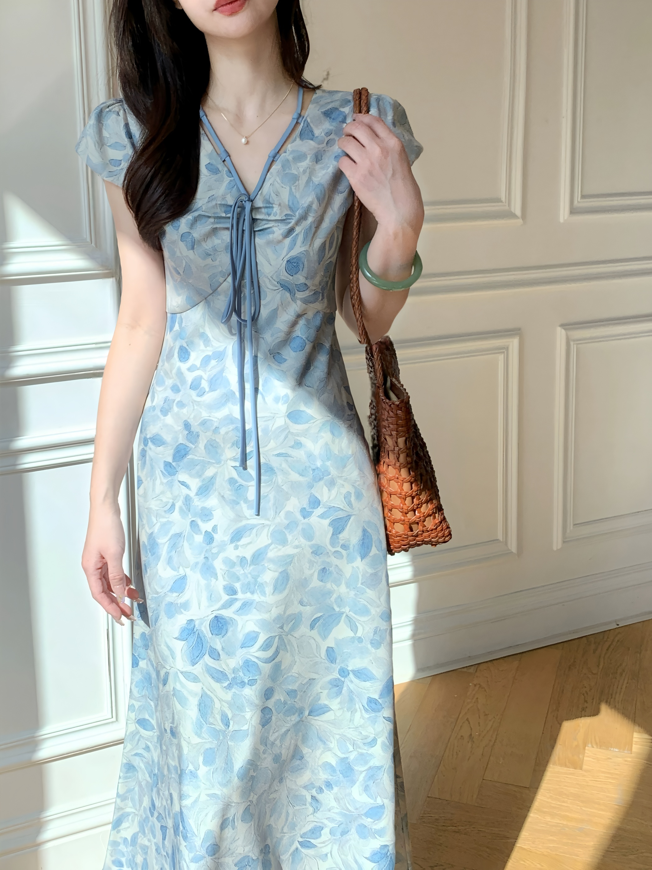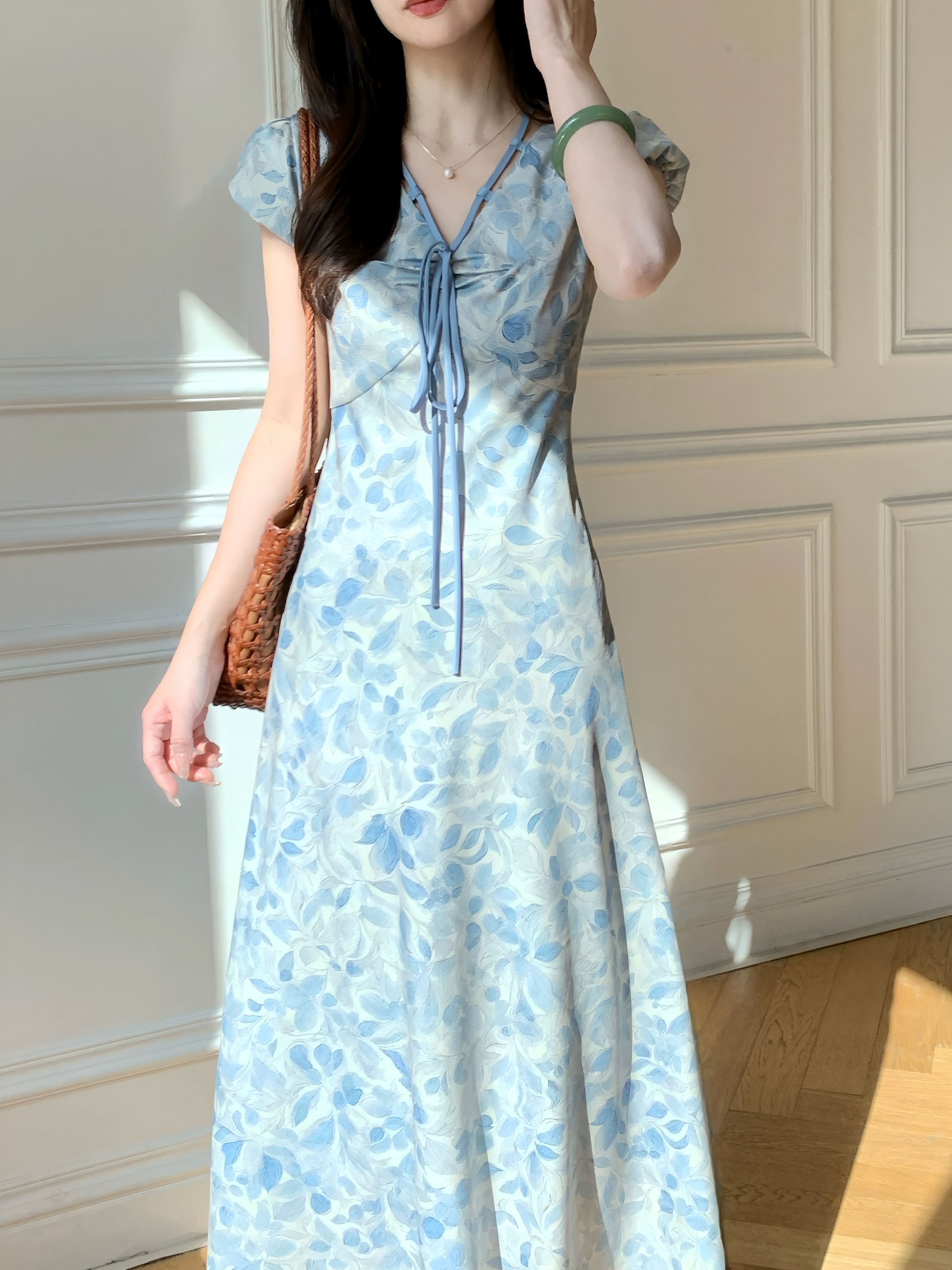面料上的碎花印花就像把海风穿在身上 蓝白配色清新到自带降温效果 黄皮姐妹穿上直接冷白皮附体 素颜出门都被夸气色好,这谁能顶得住啊! 万能穿搭王!从约会到上班通吃 这裙子简直是打工人和约会党の救星! 早上着急上班套上就走 周末约会配上编织包和凉鞋 法式浪漫感直接拉满, 面料轻薄透气 这才是夏天该有的神仙裙子啊!