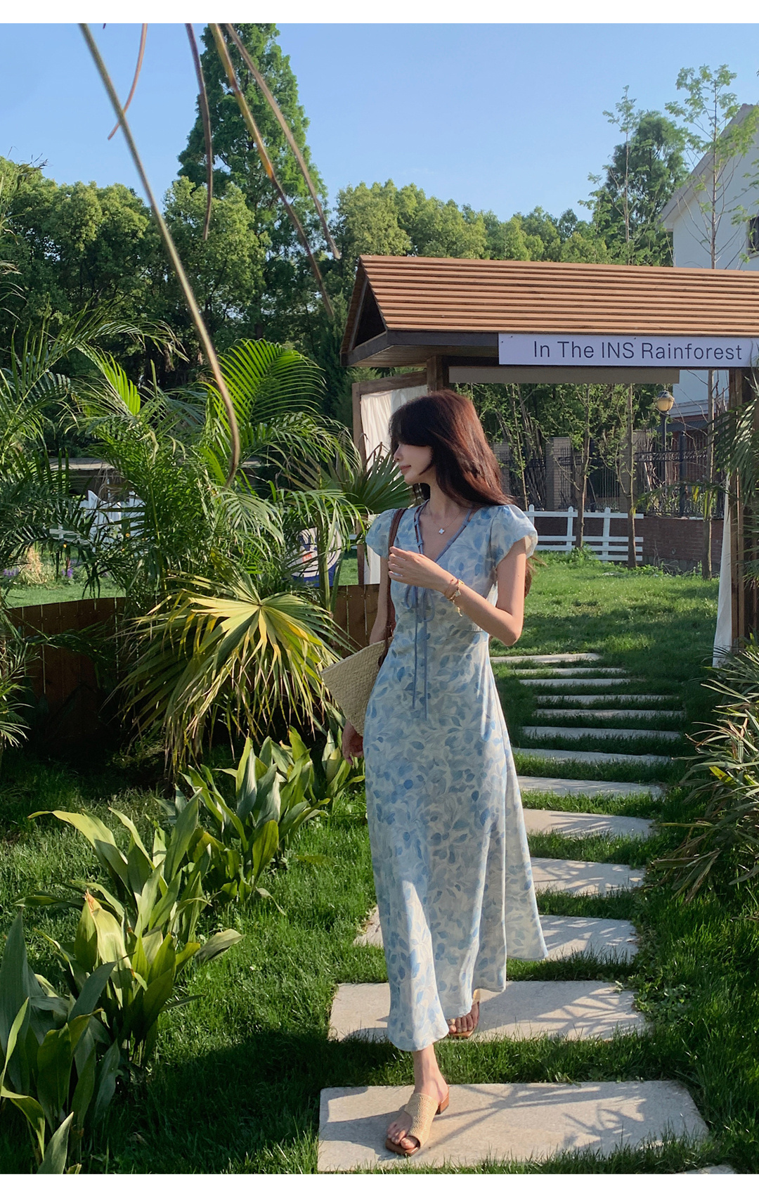 面料用的是高弹涤纶 抗皱又坚固 我们特意选了这种好面料 就是想让大家穿上它袅袅行于花间的时候 一举一动都能尽显高雅气质 100% 涤纶的抗皱效果那是没话说 出门度假带着也方便,不用担心会皱巴巴的 蓝色上身真的巨显白 穿上秒变夏日精致少女 不管是去海边度假还是参加什么聚会 穿上它绝对能成为焦点,让你美美的度过整个夏天