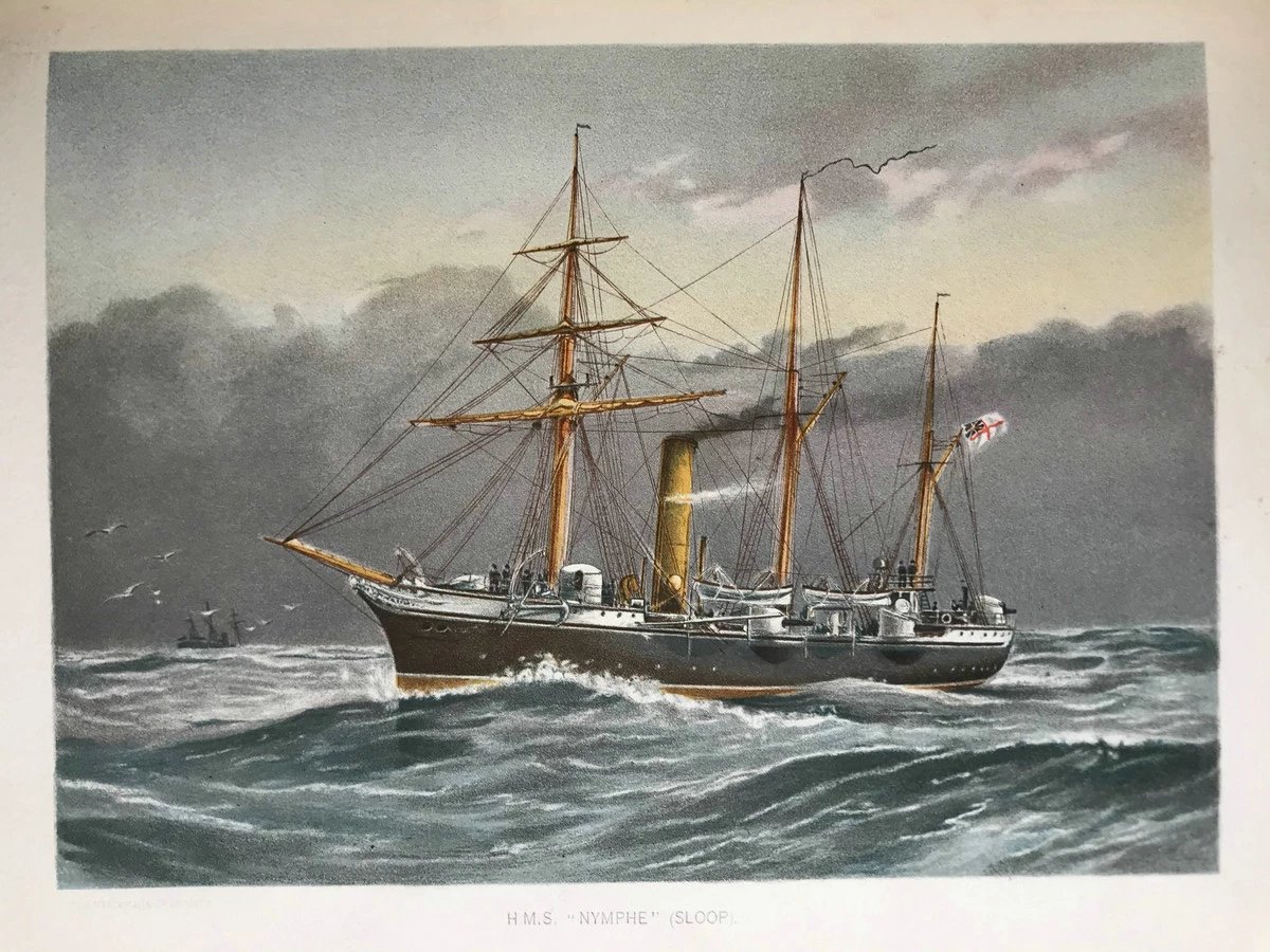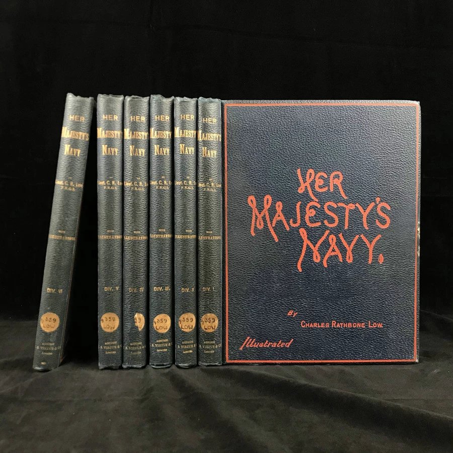 约19世纪后期 英国皇家海军史(全6卷) 约40余幅彩色版画插图 漆布精装16开
