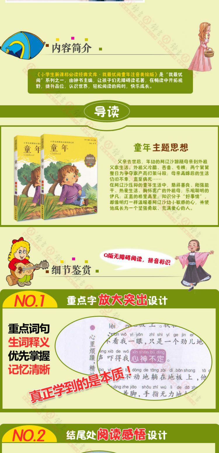 1-3年级适用 注音美绘版-童年 钟书正版少儿读物我优阅系列拼音彩图版童年 儿童文学课外读物小学生作文阅读写作能力